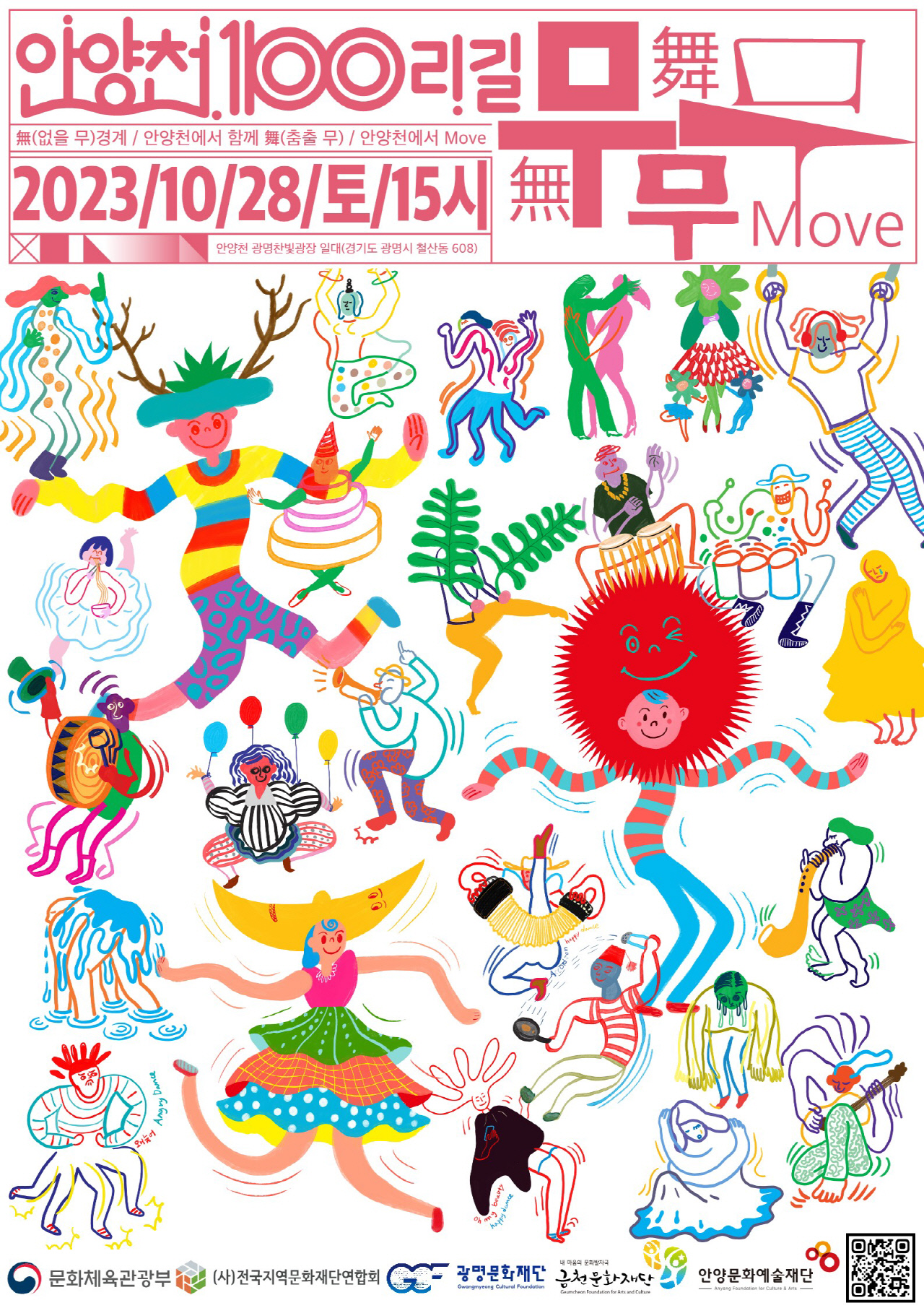 안양천 유역 지자체인 광명시, 안양시, 서울 금천구 문화재단들의 연계 협력 사업인 '안양천 100리길, 무무무(無舞Move)' 세번째 사업으로 2023년도 마무리 행사가 광명문화재단(대표이사 어연선)이 춤을 매개로 하여 기획한 퍼레이드와 공연이 지난 28일 오후 3시부터5시까지 광명찬빛광장 인근에서 열렸다. '안양천 100리길, 무무무(無舞Move)'는 문화체육관광부와 전국지역문화재단연합회가 주최·주관하는 '2023 문화가 있는 날-지역 간 연계·협력 사업'이으로 광명문화재단과 안양문화예술재단, 금천문화재단이 공동으로 기획하여 지난 5월에는 안양에서 8월에는 서울 금천구에서 문화가 있는 날 주간에 맞춰 안양천을 콘텐츠로 하여 지역주민을 위한 다채로운 문화행사를 선보였으며 10월에는 광명에서 열린것이다. ..