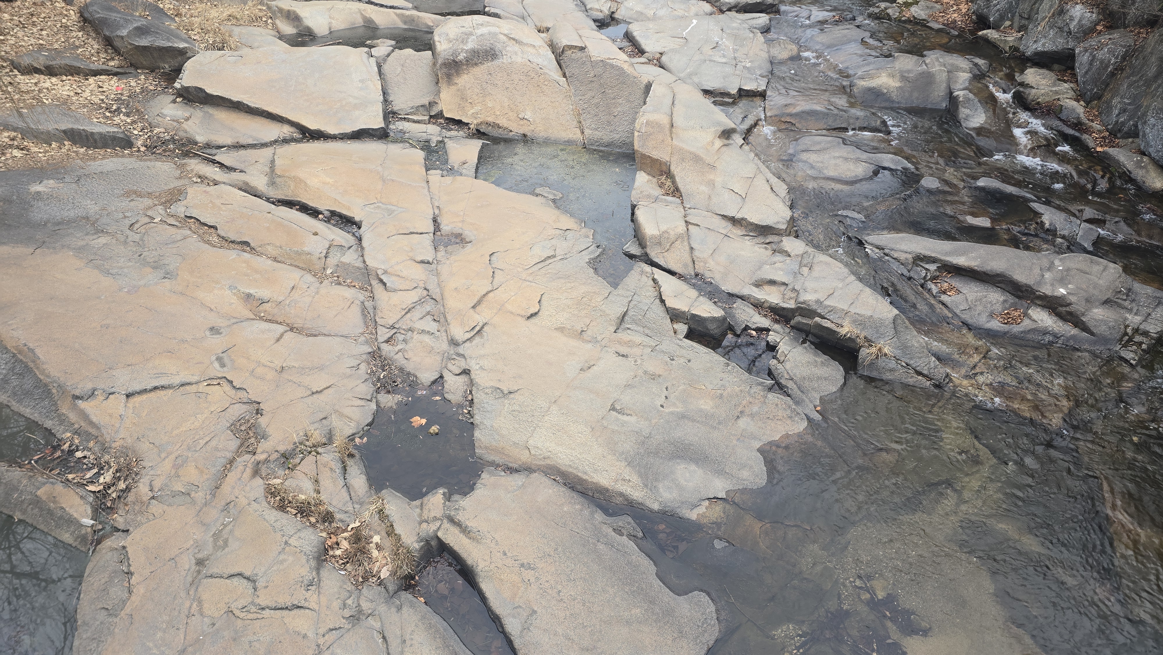2026.03.14/ #도시기록 #안양 #삼성천 #너럭바위 #안양유원지/ 안양예술공원 삼성천 계곡에는 한가족이 둘러앉아도 될만큼 넓직하고 평탄한 멋진 암반들이 곳곳에 있다. 안양예술공원 초입에는 1930년대 삼성천계곡을 막아 만든 안양풀이 있었다. 안양풀은 공짜풀로 성인용인 제1풀과 제2풀 어린이용인 제3풀이 있었으며 그위로는 너럭바위라 불리오는 암반이 계곡에 깔려있엇다. 1970-80년대 안양유원지 시절, 가족들이 피서를 오면 유료풀장에 가지 않다라도 너럭바위 또는 돈을 받고 빌려주는 계곡옆 천막을 빌려 바리바리 싸온 음식과 수박에 칠성사이다를 마시고 아이들은 계곡에서 물장구 치기도 했다. 너럭바위는 넓직하고 평탄한 면적의 계곡 암반으로 가족. 연인, 친구, 직장인들이 놀러와서 휴식을 하던 공간이다. ..