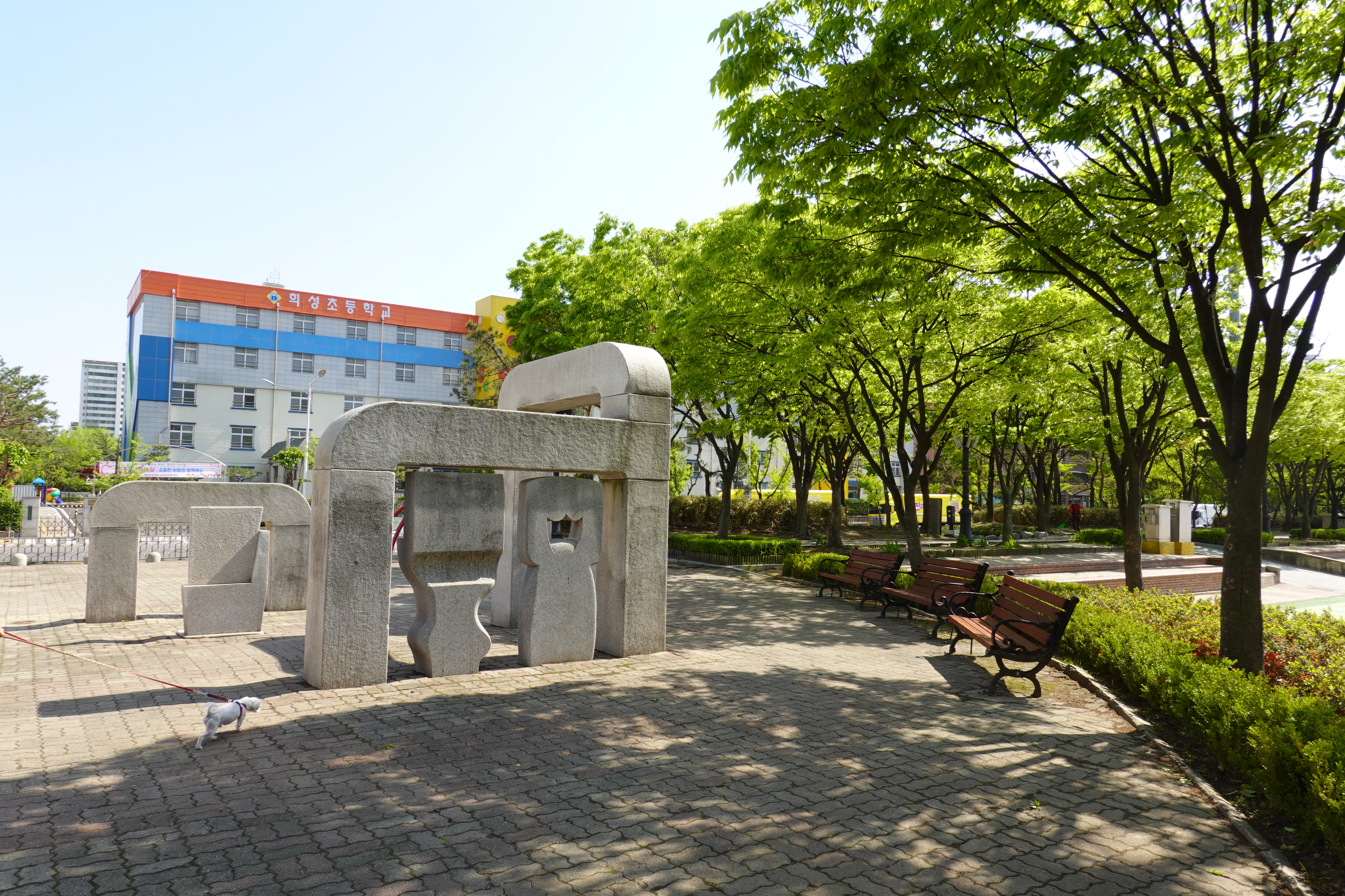 2021.05.02/ #안양 #동네 #골목/ 안양 학운공원에 설치된 공공예술작품 . 평촌 도심을 거닐다 보면 곳곳에서공공미술작품들을 만난다. 특히 평촌 중앙공원과 학운공원, 평화공원, 산책로 등에서 2007년 제2회 안양공공예술프로젝트를 통해 설치된 작품들을 찾아보는 것도 또다른 문화놀이가 아닐까 싶다. 신형섭, , 2007. 2회 안양공공예술프로젝트의 초대 작가로서 신형섭은 학운공원과 희성초등학교가 위치한 아파트 단지를 연결하는 지상경사로에 유기적으로 증식하는 형태의 오브제를 설치했다. 회색을 띄던 지상경사로는 작가가 지정한 짙은 갈색으로 도색했고, 작가의 전작인 에서 발전한 오브제를 그 위에 부착했다. 생명의 근원에 관심을 갖는 작가가 이 작품에서 주목한 개념은 리좀(rhizome)과 프랙탈(frac..