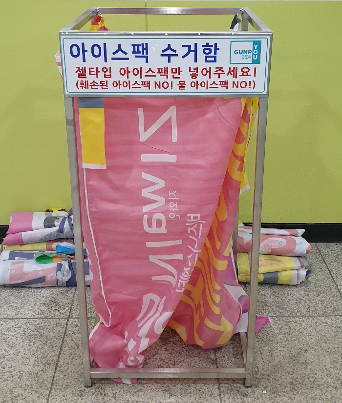 군포시는 관내 11개 동 행정복지센터에 아이스팩 수거함을 설치하는 등, 아이스팩 재사용 시범사업을 실시하고 있다고 밝혔다. 이는 코로나19 장기화로 신선식품 등의 배달이 증가하면서 한 번만 사용하고 버려지는 아이스팩이 늘어나는 등, 환경오염이 우려된다는 판단에 따른 것이다. 참여 방법은 깨끗한 젤 타입의 실온상태 아이스팩을 가까운 동 행정복지센터 마련된 아이스팩 수거함에 배출하면 된다. 단, 비닐로 포장된 깨끗한 젤 타입 아이스팩만 수거함에 넣어야 한다. 파손되거나 오염된 아이스팩은 종량제봉투에 담아 배출해야 하며, 물 타입의 아이스팩은 개봉 후 물은 하수구에 버리고 겉 포장재는 재질(종이, 비닐)에 따라 분리배출해야 한다. 수거함에 모인 아이스팩은 세척, 소독, 건조 과정을 거쳐 대규모 점포와 전통시장..