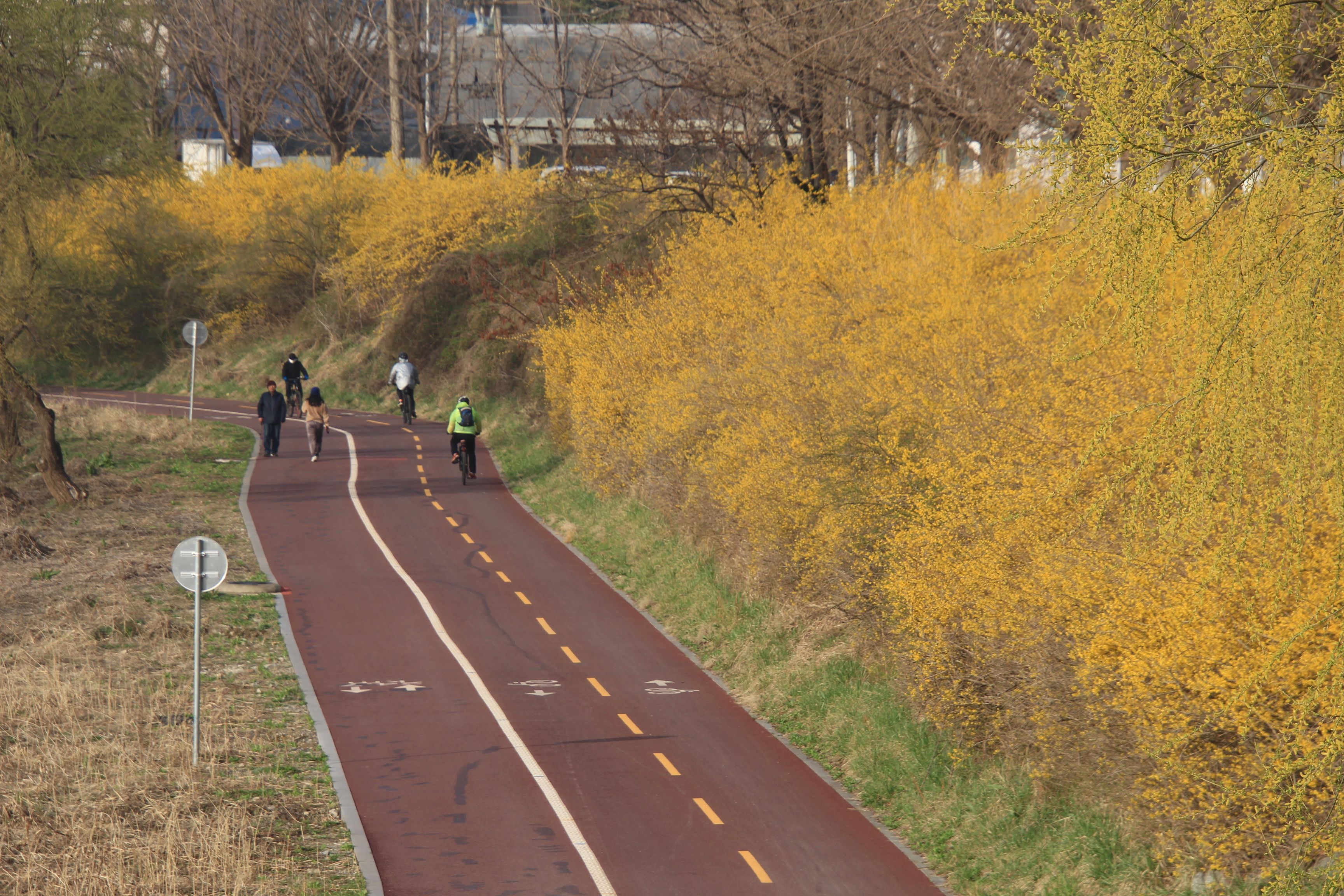 2023.03.29/ #도시기록 #개나리 #안양천 #노란물감/ 안양천 뚝방에 노란 개나리꽃 만발. 안양천 물에 비친 노란 개나리 물결은 마치 노란 물감을 풀어놓은듯 하다. 개나리꽃은 안양시 상장꽃(사회)이다. 매년 봄이 찾아오면 개나리꽃이 안양천과 학의천, 삼성천 등 지천 뚝방에 만발하는데 특히 안양천의 쌍개울-명학대교 구간, 학의천의 쌍개울-내비산교 구간이 가장 아름답다. 하지만 안타깝게도 안양천 쌍개울-명학대교 구간의 서쪽 뚝방의 개나리 군락지를 대부분 베어버려 참혹하기 짝이없다. 역대 안양시장뿐 아니라 현 최대호 시장도 쌍개울을 중심으로 안양천과 학의천변 둔치를 따라 개나리 이십리길 민들기와 안양시를 상징하는 개나리축제를 해보면 어떨까 정책적 검토를 했고 천변 둔치 중간중간 빈곳에 개나리 식재하기도..
