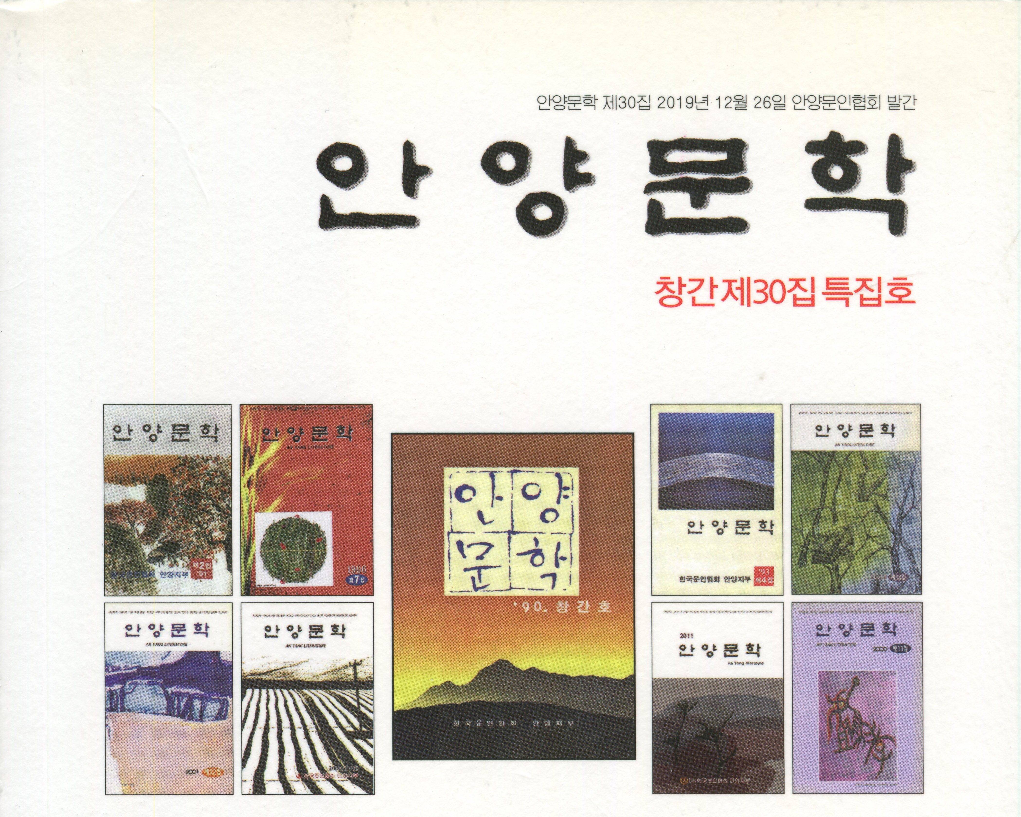 안양문인협회 연혁(1947-2023) 안양문학 창간 제30집 특집호에 게제 한국문인협회 안양지부 장지셥 부지부장 자료 조사 및 정리. 1947년 08. 05 - 안양문학동인회 결성 및 안양동인문예집 제1집 「청포도」 창간 발행 (박두진, 설웅규, 박준석, 양순영, 송세영, 전재찬, 고의종, 서수옥) 1958년 04. 20 - 범문단 시전문지 『시와 시론』 창간호(주간 성기조) 발행 (김창직, 노영수, 성재광, 정귀영, 조구마) 09. 20 - 『시와 시론』 제2집(편집대표 김기화) 발행 1960년 - 『시와 시론』 제3집(동인지로 전환, 편집장 김창직) 발행 1961년 10. 25 - 『시와 시론』 제4집(편집장 김창직) 발행 1963년 03. 23 - 『시와 시론』 제5집(편집장 김창직) 발행 09. ..