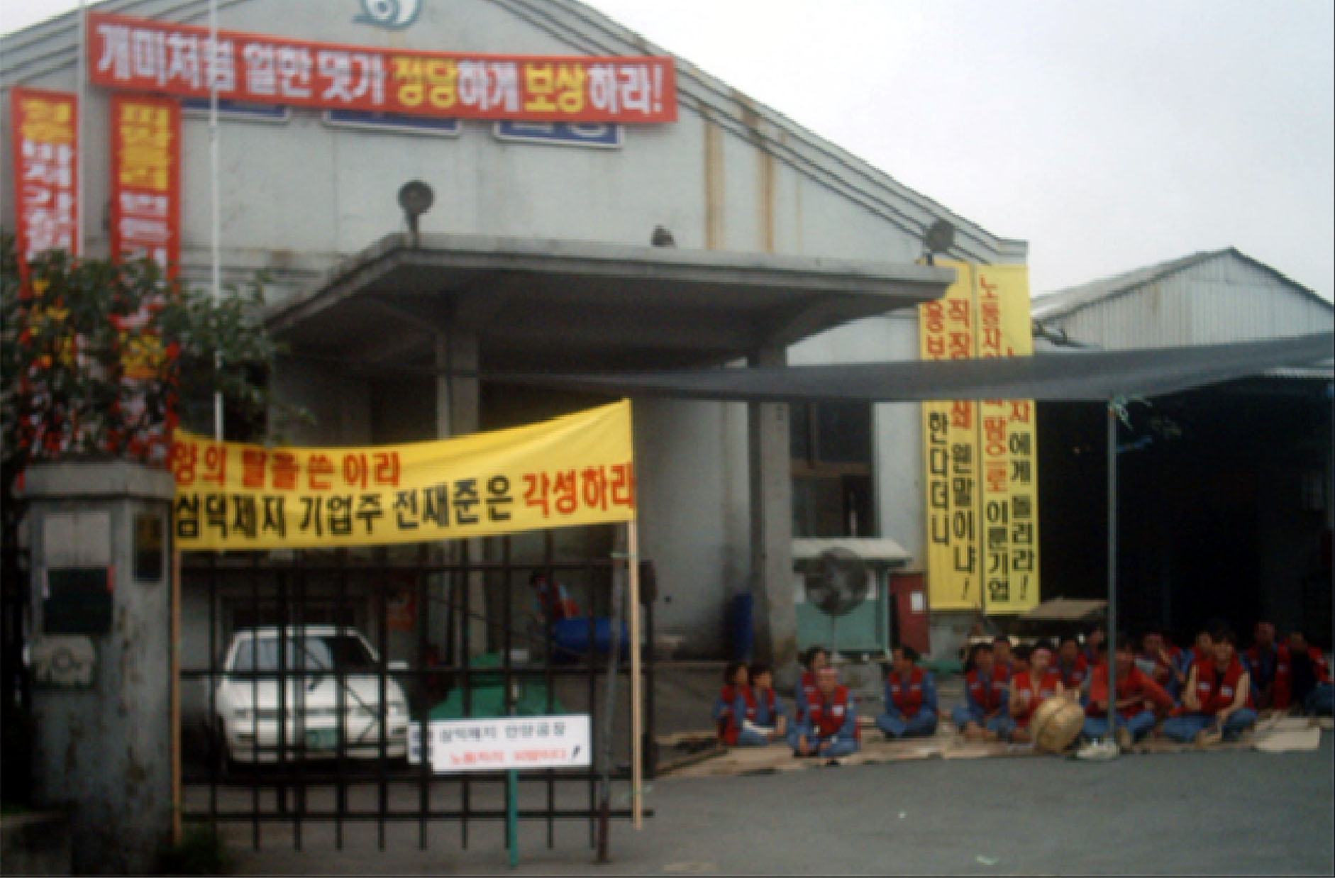 2023.07.15./ #아카이브 #옛사진 #안양 #삼덕제지 #삼덕공원 #since2003 복구한 외장하드 깊숙한 곳에서 찾아낸 사진 한장. 지금부터 20년전인 7월 삼덕제지가 문 닫기전 공장 노동자들이 정문앞에서 직장폐쇄 반대 및 위로금 및 퇴직금 현실화 등을 요구히며 시위를 벌이고 있다. 300억원대 공장 부지를 사회에 환원해 삼덕공원을 조성한 선행과 기부문화 뒷편에 감추어져 있는 아픈 이야기입니다 경기도 안양시 만안구 안양4동 삼덕제지의 종업원들이 직장을 잃고 노숙자로 전락할 위기에 처했다. 이 회사 전재준(全在俊.80) 회장은 2006년 3월 11일 안양시청을 방문, "공장 땅은 땀흘려 번 것이 아니기 때문에 주민에게 돌려준다"며 안양에서도 금싸라기 땅으로 평가되는 공장부지 4천364평(시가 30..