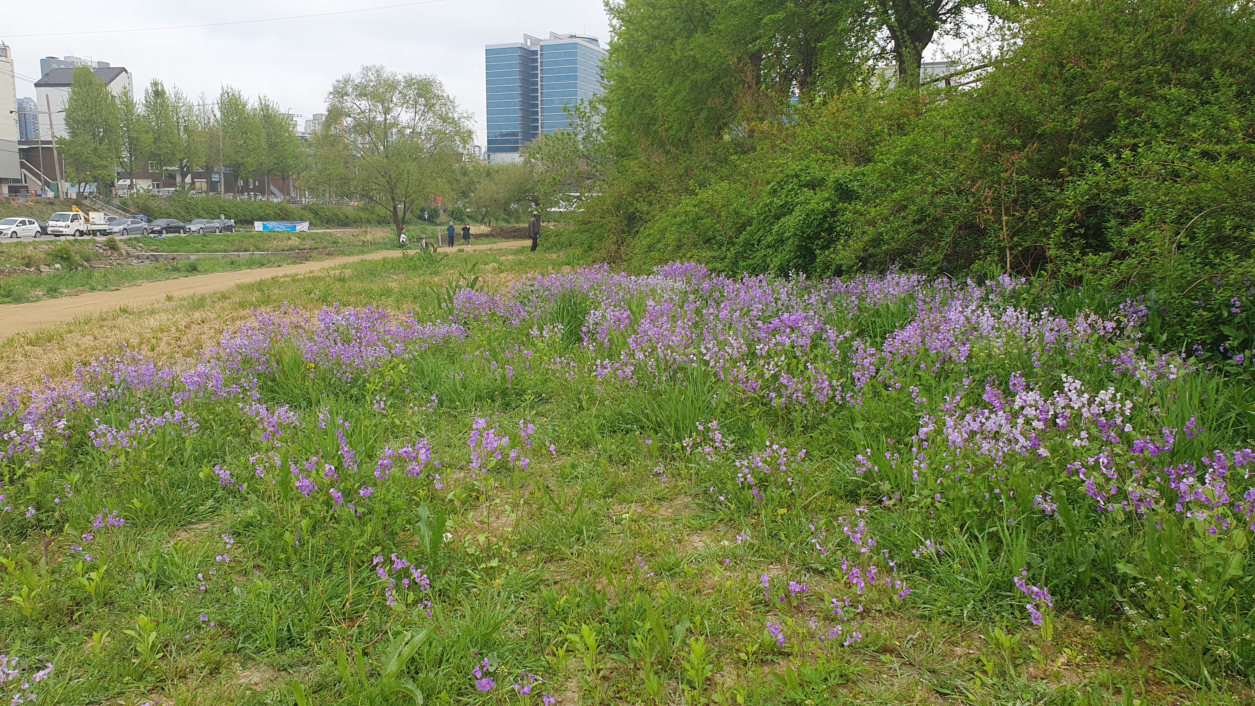 2023.04.18/ #돟시기록 #소래풀 #보라유채꽃 #학의천/ 소래풀 이미 학의천 중류까지 퍼지다. 안양천변에 피어나기 시작한 소래풀(보라유채꽃)이 이제는 안양천 곳곳에서 군락지를 이루고 있다. 점차 지천으로 확산되는 추세속에 지난 16일 학의천을 조사한 결과 학운교부터 대한교 구간에 간간히 한두 포기의 소래풀을 발견한데 이어 18일 상류쪽을 확인한 결과 관양교 주변 흙길 산책로에서 대규모 군락지 를 발견했다. 인덕원인도교 아래에서도 소래풀이 보인다. 산책길을 오가는 주민들이 군락지안에서 사진을 찍다보니 포토존이 자연스럽게 만들어지기도 한다. 몇년전부터 안양시와 하천 관내 동 주민들이 식물과 화초를 심어 인공꽃밭을 만드는데 굳이 그렇게 할 필요가 없을것 같다. 시가 작년에 인덕원인도교 주변의 꼬리명주나..