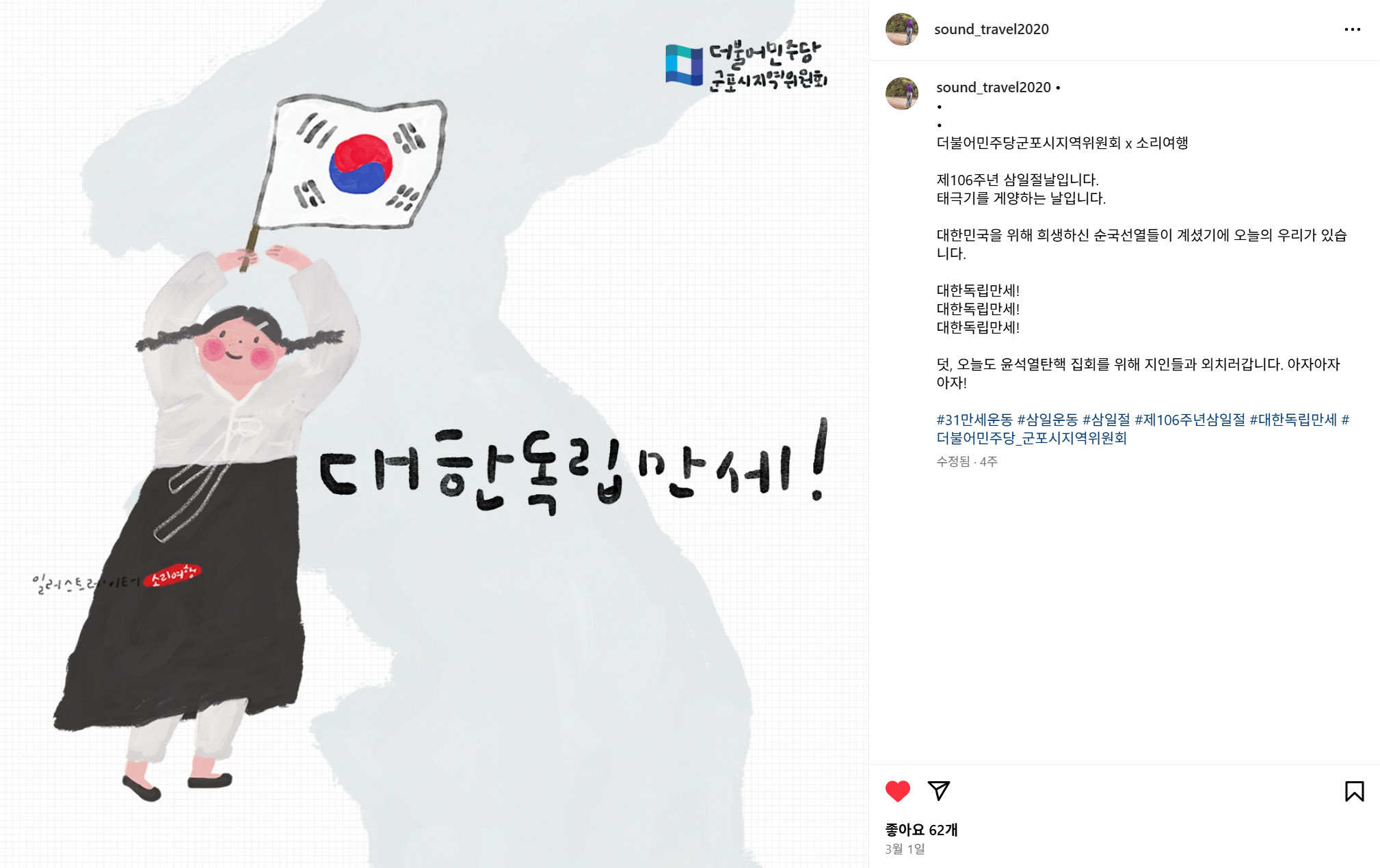2020ㅣ3.1운동 및 대한민국 임시정부 수립 100주년 '국민참여 기념사업'일러스트 선정 인증