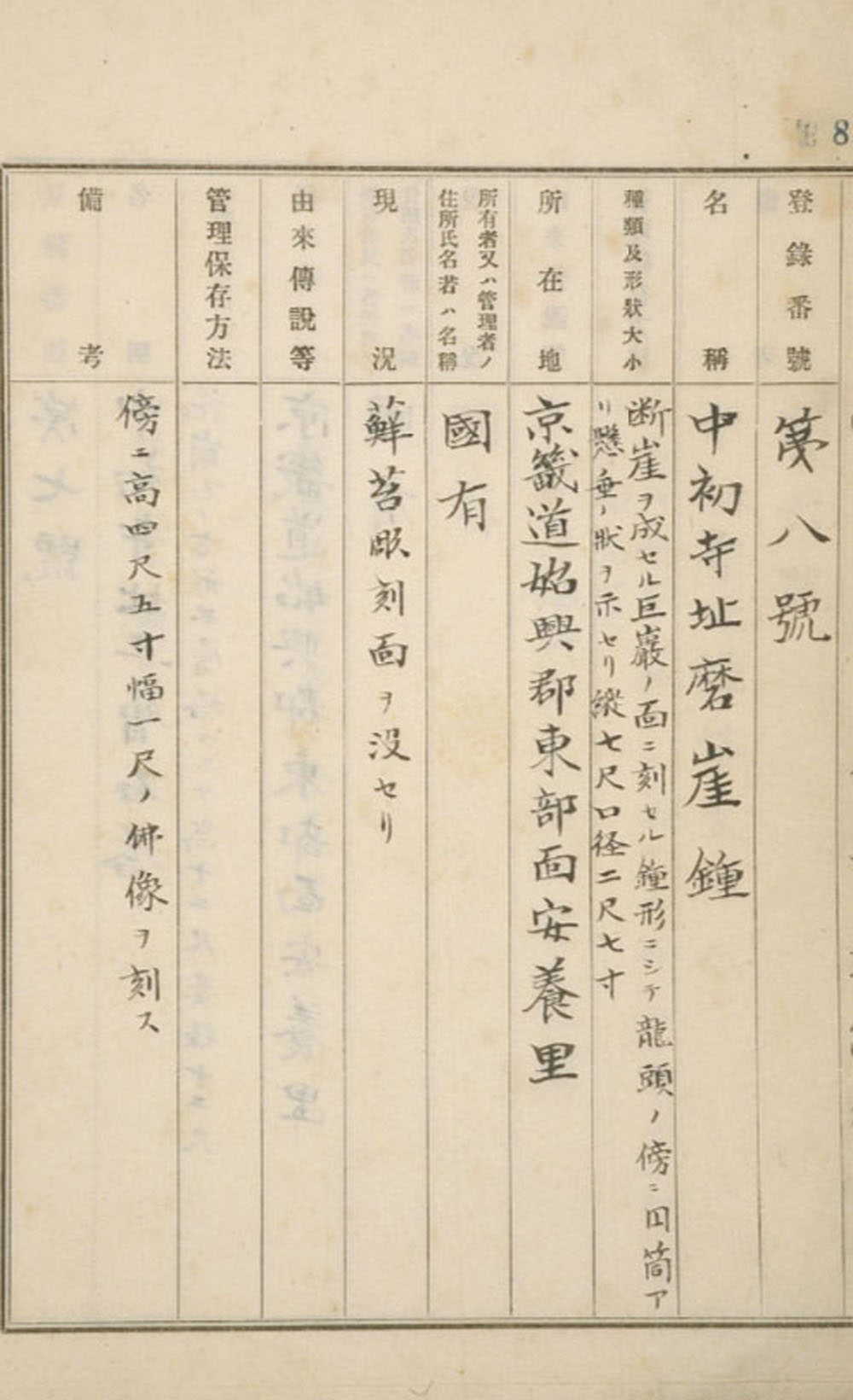 이 마애종은 1916년에 조선총독부가 조사하고 제정한 '고적급유물보존규칙'에 따른 '고적급유물등록대장'에 "등록번호 제8호 중초사지마애종"으로 등재되어 있었다. 하지만 어찌 된 영문인지 1934년에 조선보물고적명승천연기념물보존령에 따라 처음으로 보물지정이 이뤄질 당시에 중초사 당간지주나 삼층석탑처럼 '보물'의 반열에 오르지 못했다. 다소 의아한 대목이 아닐 수 없다.