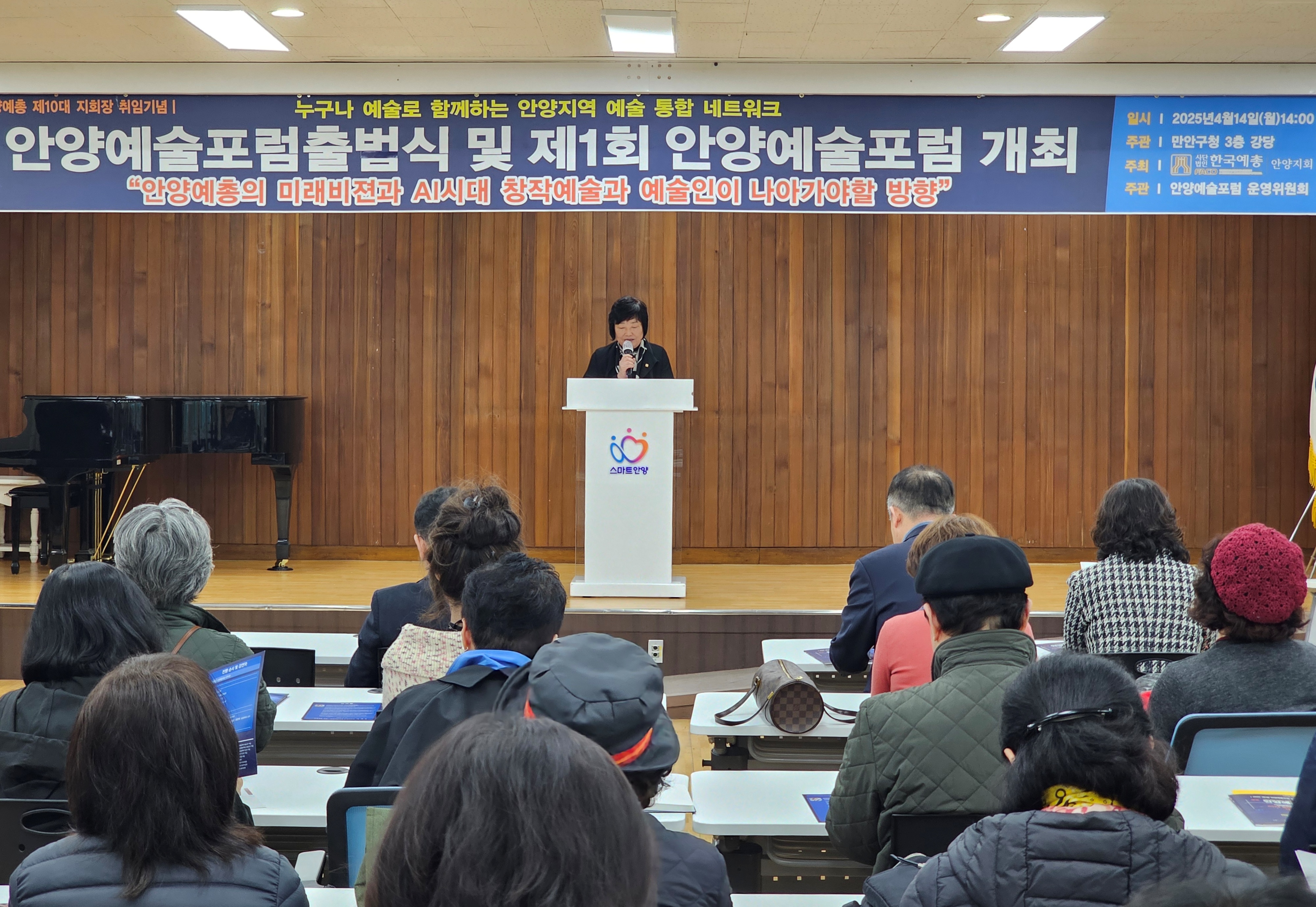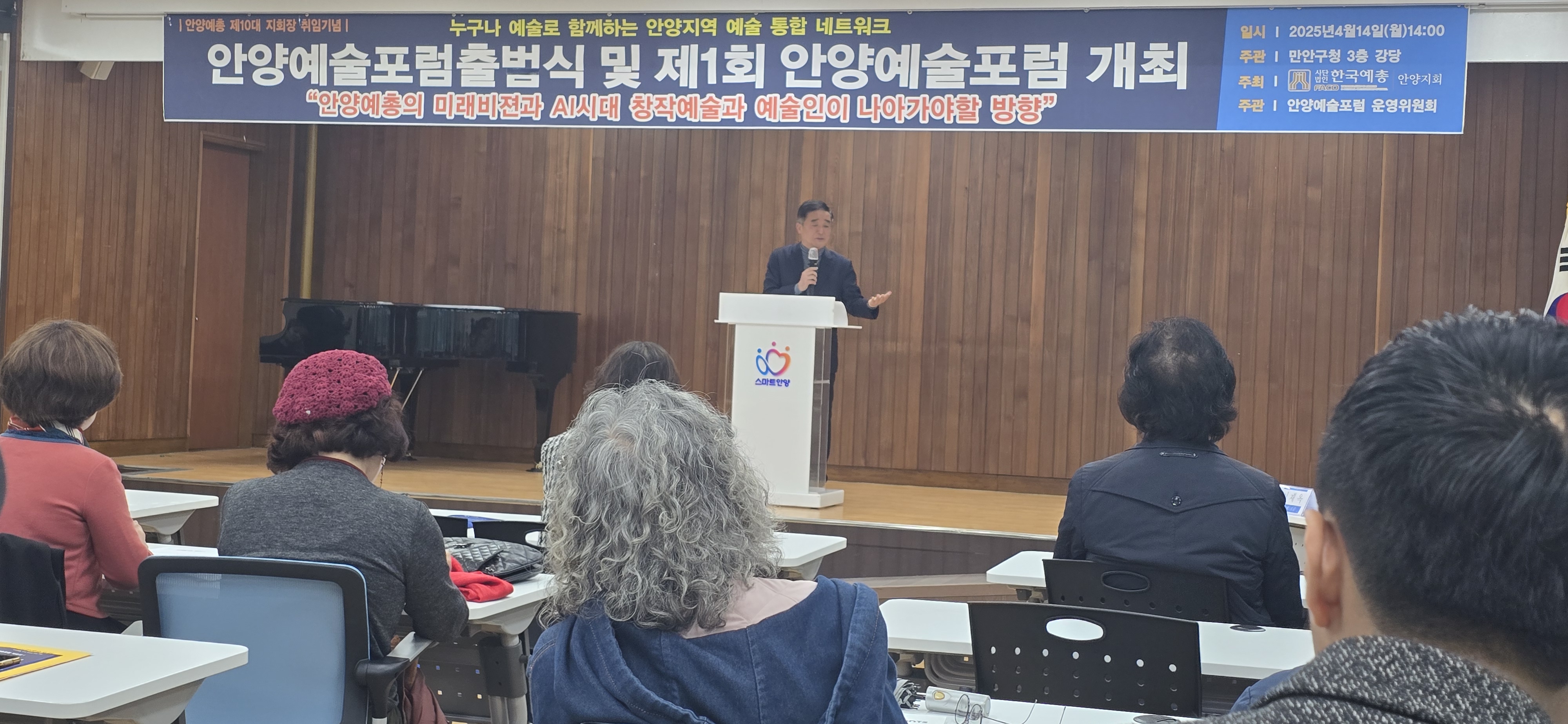 안양지역 예술 통합네트워크를 표방하며 출범한 안양예술포럼이 지난 4월 14일(월) 오후 2시, 만안구청 3층 강당에서 지역 전문예술인, 시민 등 150여 명이 참석한 가운데 출밤식을 통해 공식 발족하고 제1회 안양예술포럼을 개최했다.