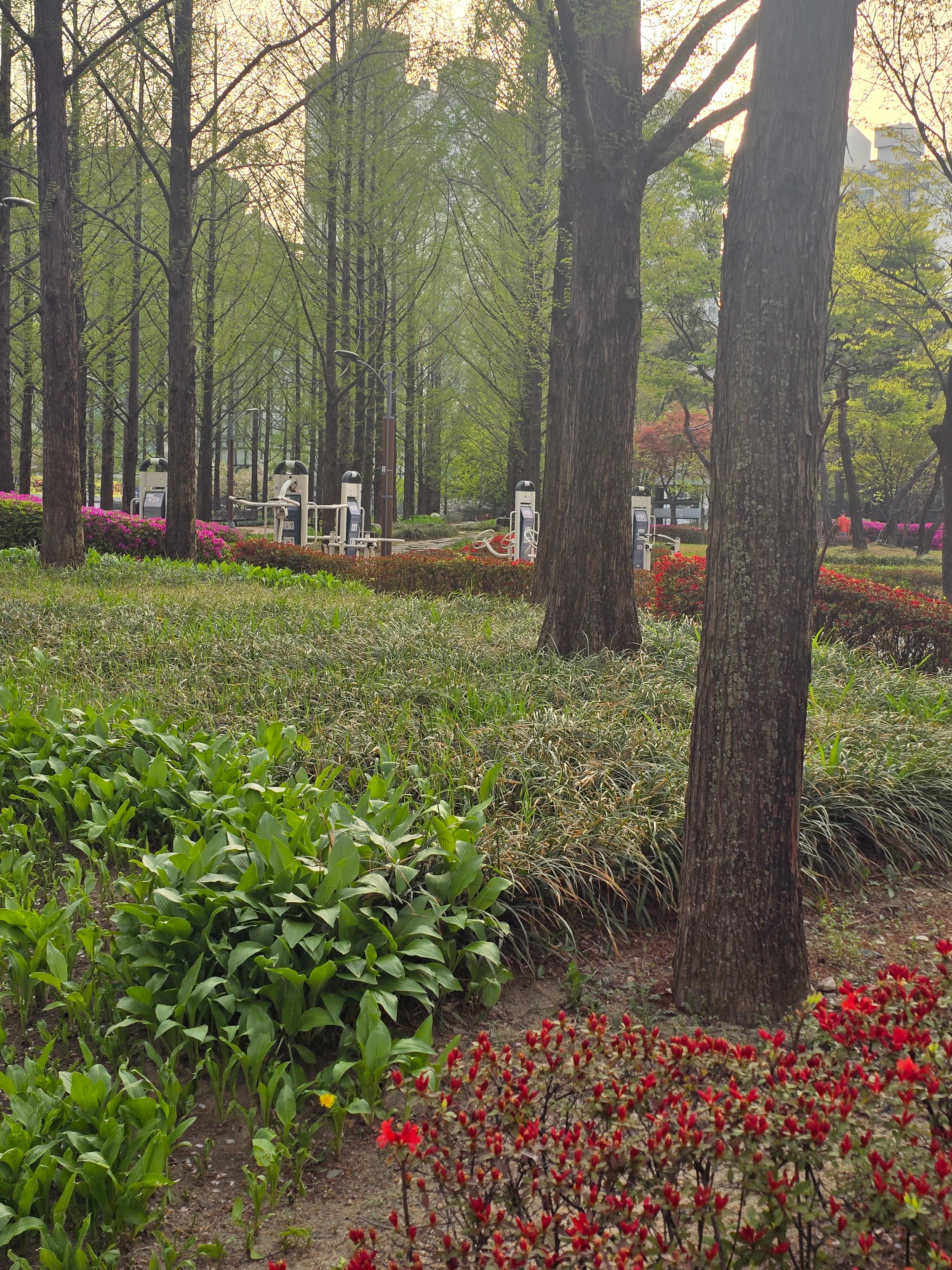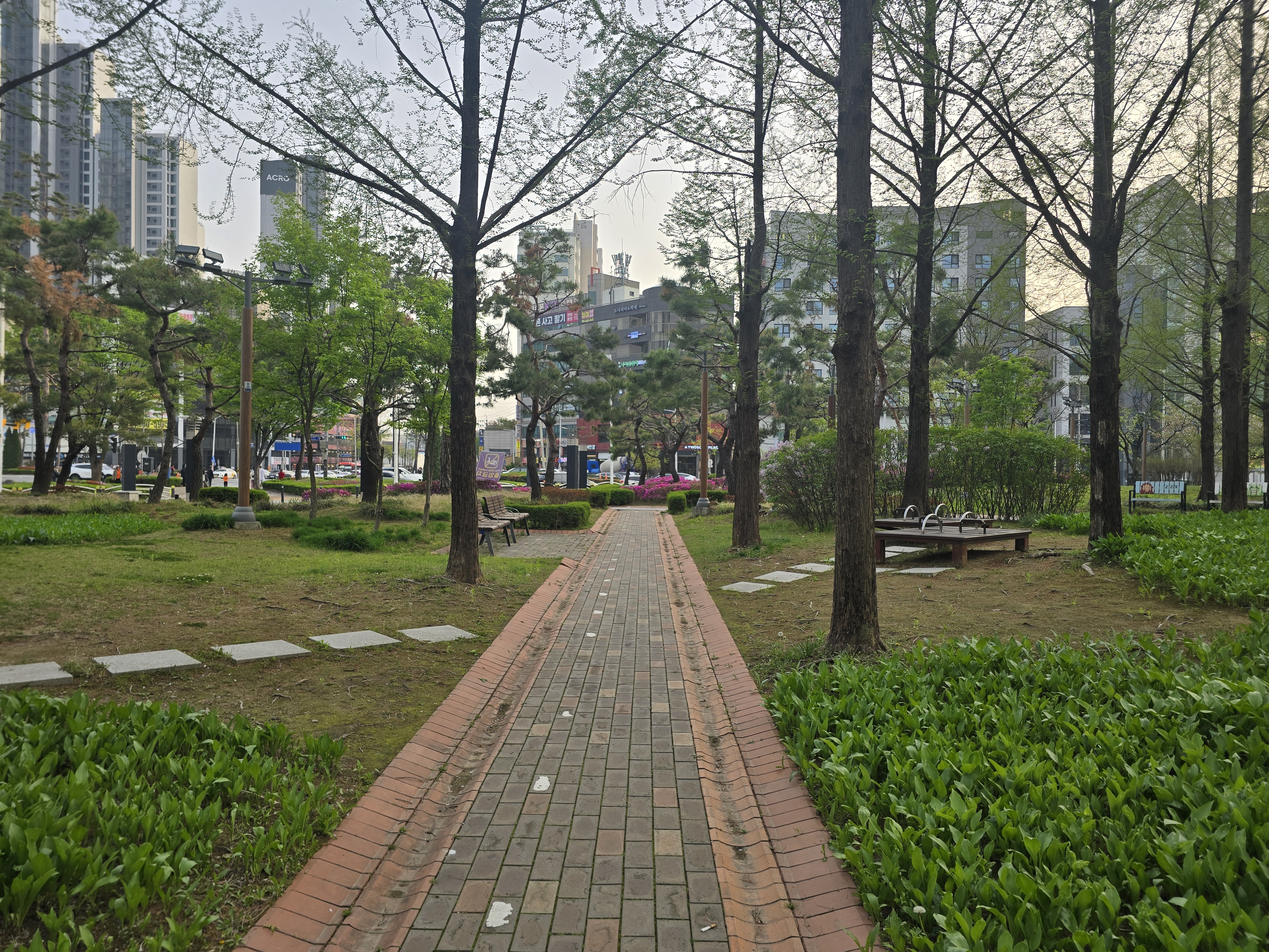 2025.04.18/ #도시기록 #안양 #화공원/ 안양시 동안구 범계사거리에서 안양시청 방향 좌우측에는 아담한 공원이 서로 마주보고 있다. 좌측은 평화공원. 우측은 희망공원이다. 주변에는 2001아울렛과 롯데백화점, 안양경찰서, 공항버스정류장 등이 있어 차도 많고 사람도 많은 곳인데 나무숲과 휴식시설이 잘 조성돼 도심속 쉼터 역할을 톡톡히 하는곳이다.