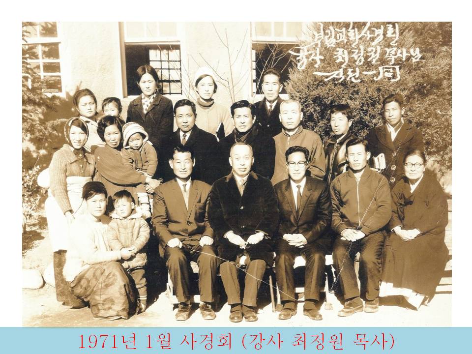 조선예수교장로회 사기와 당회록에 따르면 1910년 4월 15일 미국산교사 피득(Alex A. Pieters) 선교사가 문학선 씨에게 복음을 전파하며 설립한 것으로 기록돼 순회선교를 하던 선교사에게 전도를 받은 성도의 가정교회로 시작됐음을 알 수 있다. * 1911. 10. 25 문학선씨 소유로 초가1동을 교회당으로 사용