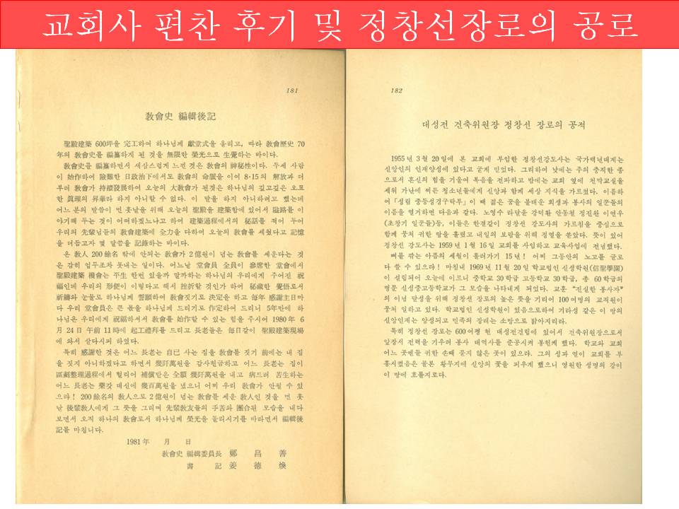 1913년 10월 12일 기록된 4회 당회록을 보면, "교회당을 세우기로 결정하고 빈궁한 중에도 열심히 모금하여 장래에 교회당 세우는 일에 쓰도록" 결의하는 등 가난한 가운데서도 헌신의 결단을 보였다. 교회에서 운영하던 성경구락부는 지역에서 유명한 기독사학의 모체가 되었다. 그 명맥이 지금까지 이어져 장학사업을 지속적으로 전개하며 지역 인재 양성에 힘을 쏟고 있다.