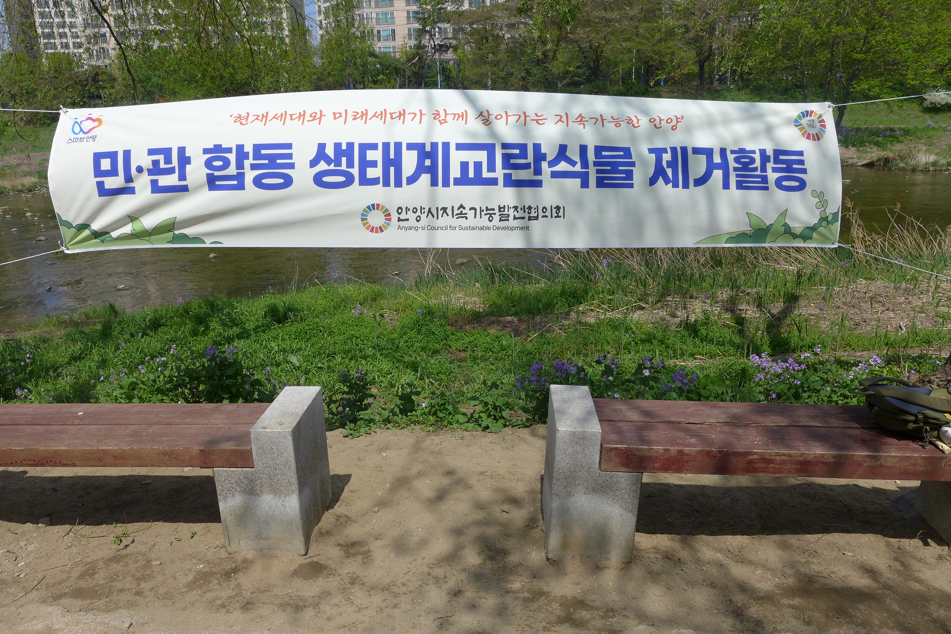 안양시지속가능발전협의회(이하 안양지속협)가 20일 안양천 일원에서 생태계 교란 식물 제거 활동에 나섰다. 이는 지난 3월21일 충훈2교에서 박석교 구간에 대한 1차 현장답사를 실시한데 이어 4월11일 2차 활동을 통해 본격적인 유해식물 제거를 시작한 이후 세번째로 안양지속협은 오는 5월 3일 오후 2시에 제4차 제거활동을 실시하기로 예고하는 등 안양천 충훈1교-박석교 구간의 생태계 교란식물 개체수를 조절하기 위해 총력을 기울이고 있다.
