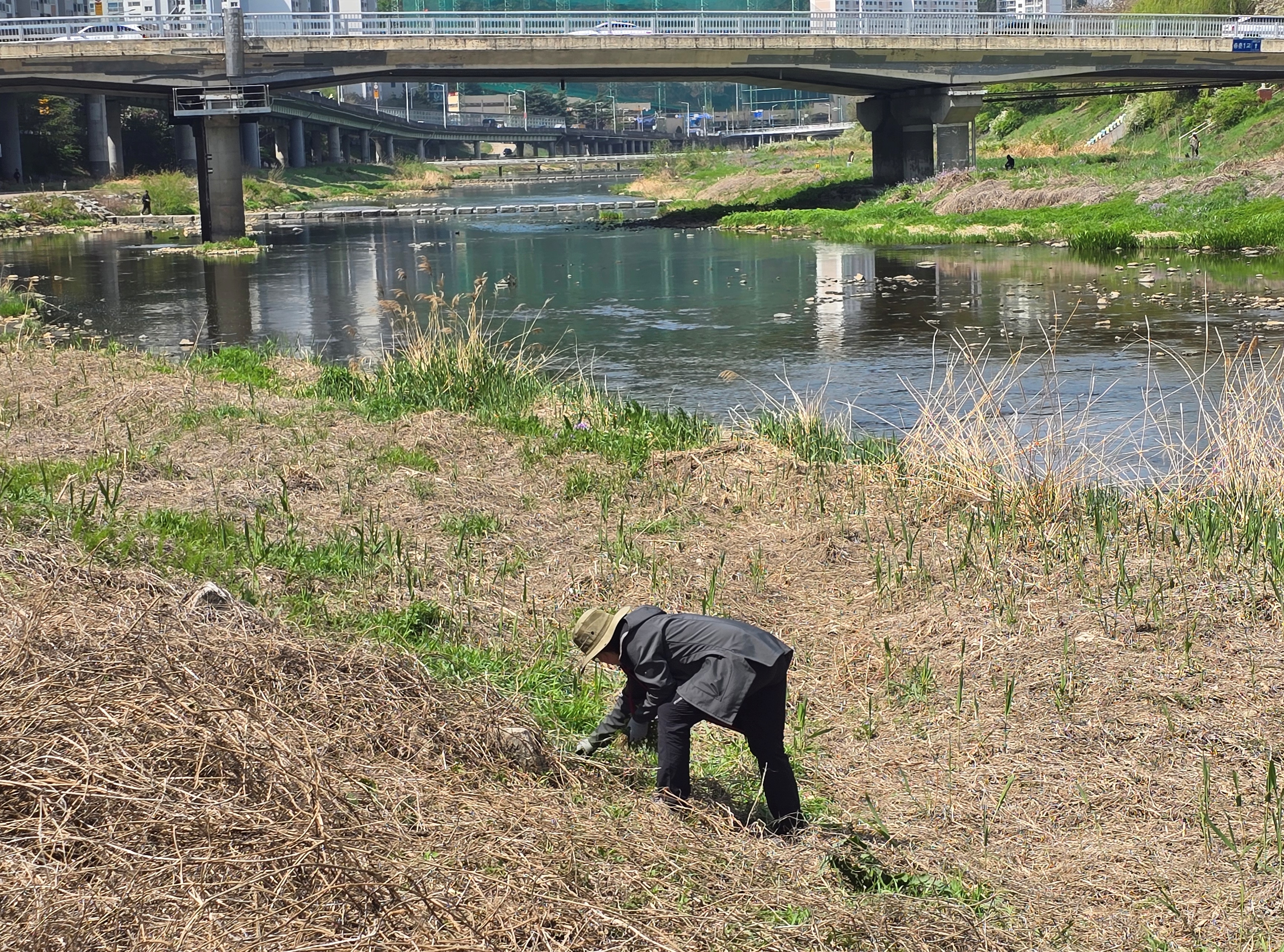 빠른 번식력으로 자생식물들의 생장을 방해하고, 생물 다양성을 저하시킬 수 있어 하천 생태계를 위협하는 생태계 교란식물 제거작업은 자생식물이 건강하게 자랄 수 있는 지속 가능한 생태환경을 만들기 위한 중요한 첫 걸음으로 건강한 하천 생태계 유지를 위해서는 이를 제거해야 하는데 식물의 싹이 나오기 시작하는 4~5월이 적기이기 때문이다.
