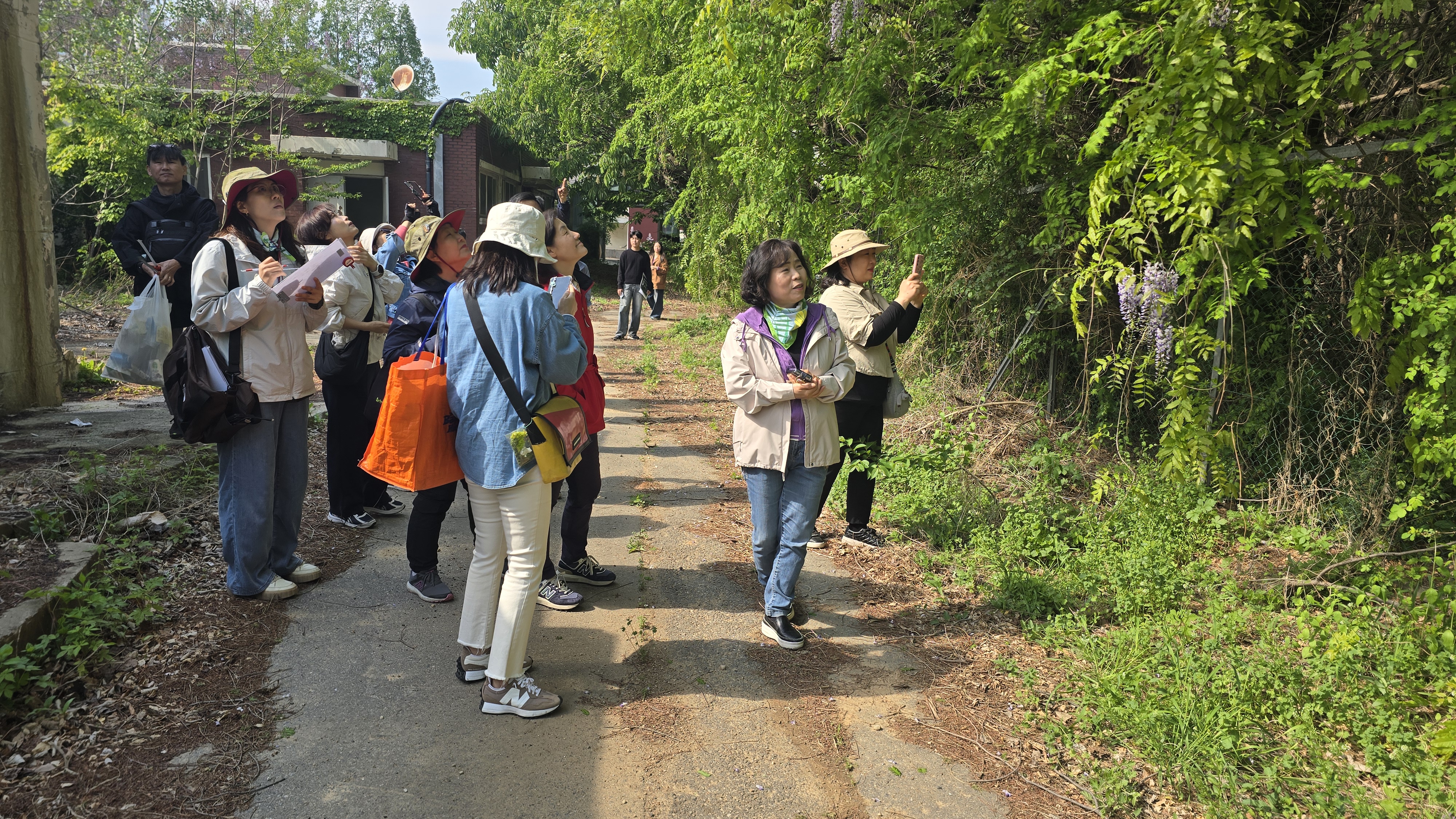 이날 참석자들은 옛 국립농림축산검역본부에 대한 역사를 이야기를 듣는 한편 본관동앞 정원의 수호신같은 50년 이상된 버드나무와 왕벚나무, 산수유나무, 튜울립나무 등을 살펴보고 안양시 관련부서 협조로 지난 10년 동안 시람이 발길이 닿지 않았던 미개방구역에 들어가 인간의 손길이 닿지 않은 곳에서 자라고 있는 식물과 나무들을 표본 조사하고, 과거 이곳에서 발견된 고라니의 이야기, 안양의 밤줍기 행사이야기 등을 들으며 시간 여행을 했다.