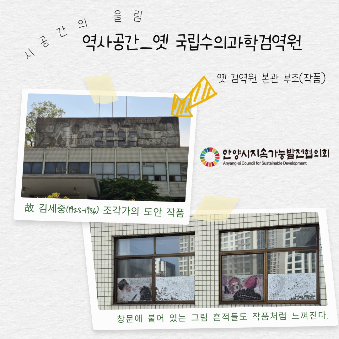 안양 만안구 도심속에 자리한 과거 농림축산검역본부 본관동은 단순한 과거의 유산이 아니라, 현재와 미래를 잇는 소중한 문화적 자산이다. 특히 본관 건물 벽면에 새겨진 콘크리트 부조는 지난 2024년 개최되었던 APAP를 통해 우리나라 조각계의 거장인 故 김세중 선생의 도안 작품으로 확인되면서 안양 공공예술의 효시로서 건축적·시대적 가치를 고스란히 간직한 유산으로 자리 잡았다.