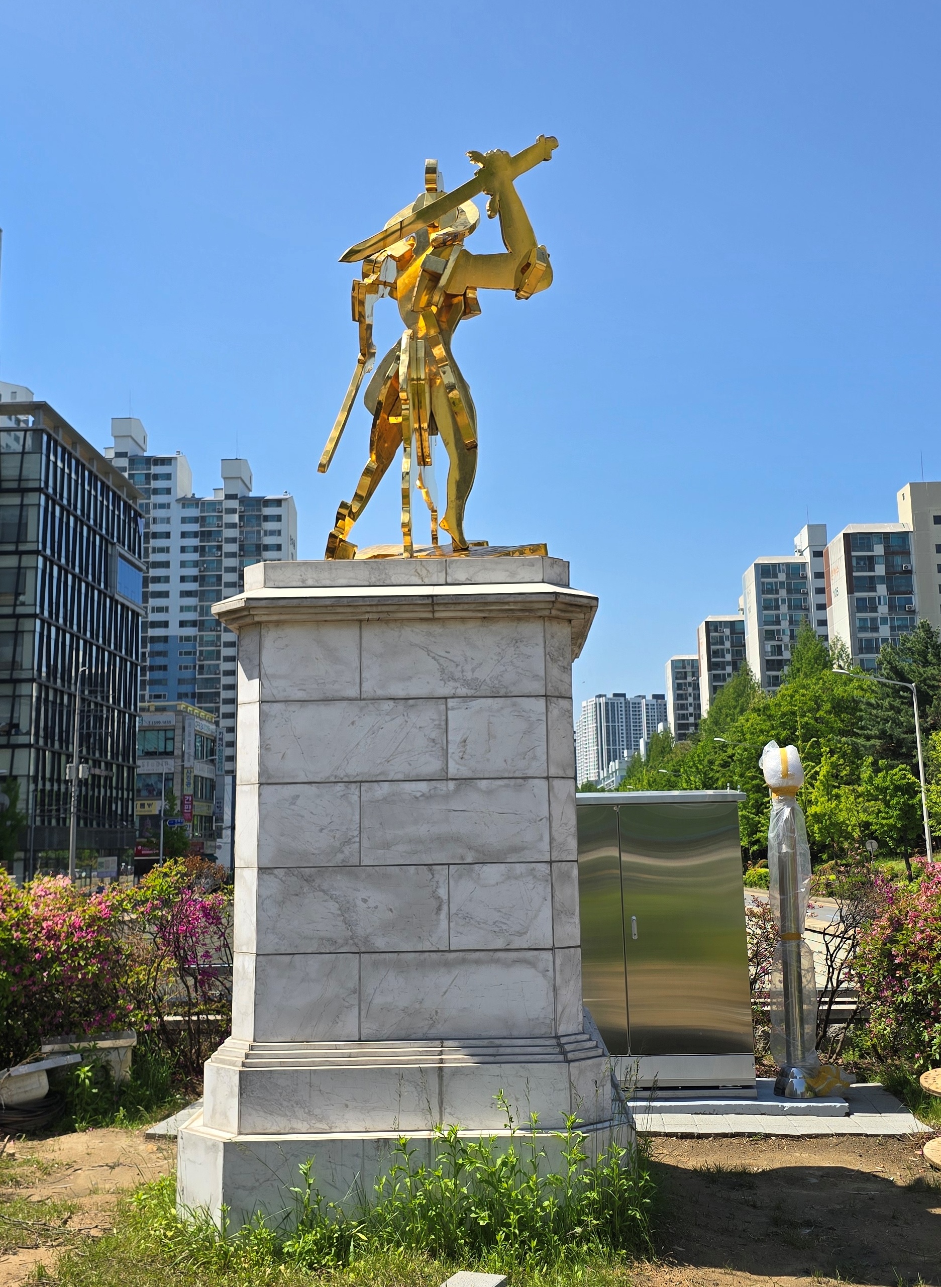 경수산업도로(1번국도)와 시민대로 교차점인 범계사거리 지하차도위 녹지대에 스테인레스, 금박도장, 대리석을 재료로 만든 공공예술작품(거리조형물) 한점이 있다. 제2회 APAP(2007년)때 설치된 작품으로 금빛 돈키호테(Don Quixote)가 안장 위에 앉아서 북쪽을 바라보며 크게 호령하고 있는듯하다.