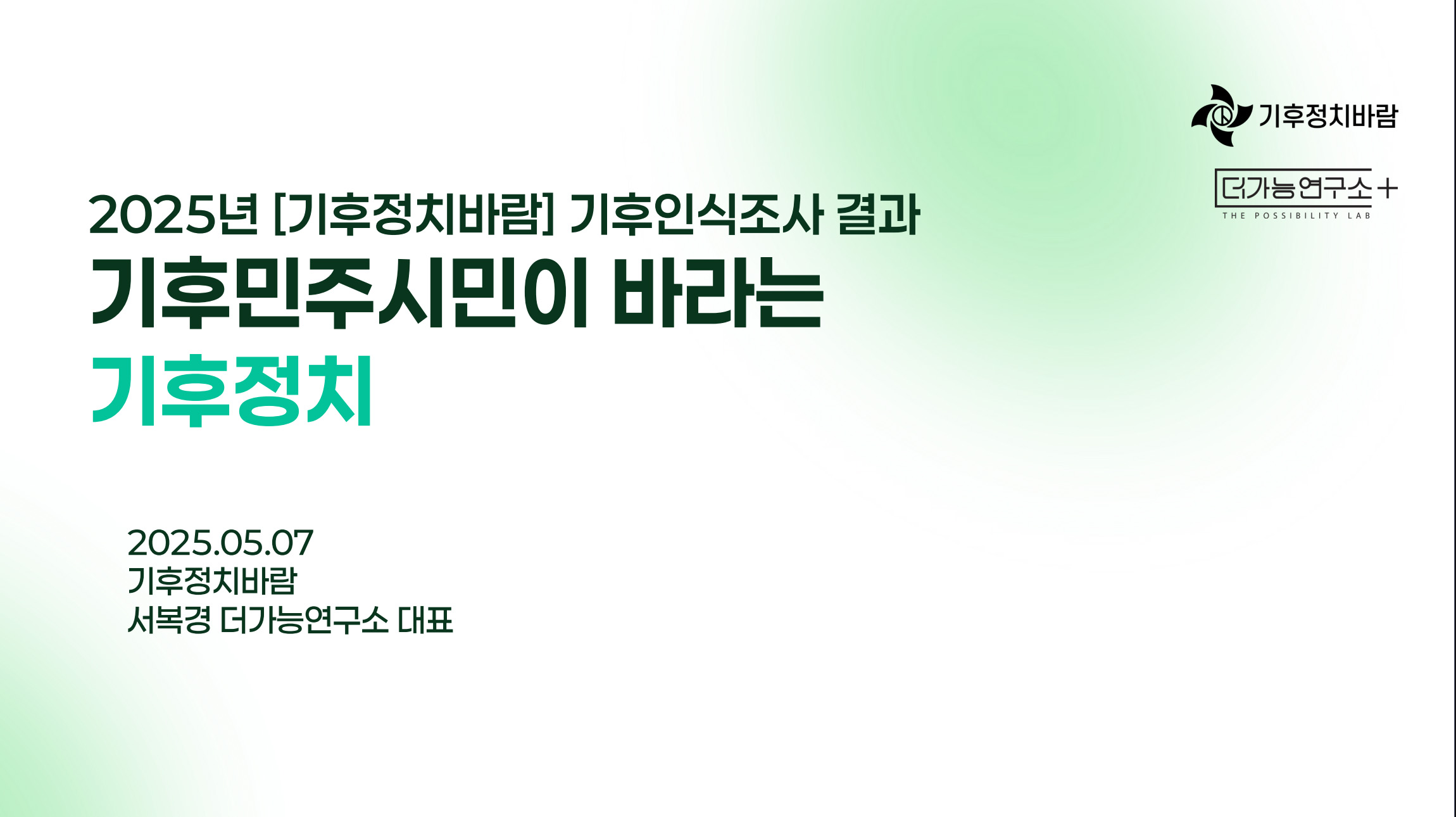앞서 기후정치바람은 지난 7일 서울 영등포구 FKI타워에서 ‘기후민주주의자들이 바라는 대한민국: 2025 기후위기 인식조사 결과 발표 집담회’를 개최했다. 기후정치바람은 녹색전환연구소·더가능연구소·로컬에너지랩 등 3개 기관이 이 참여한 프로젝트그룹이다.