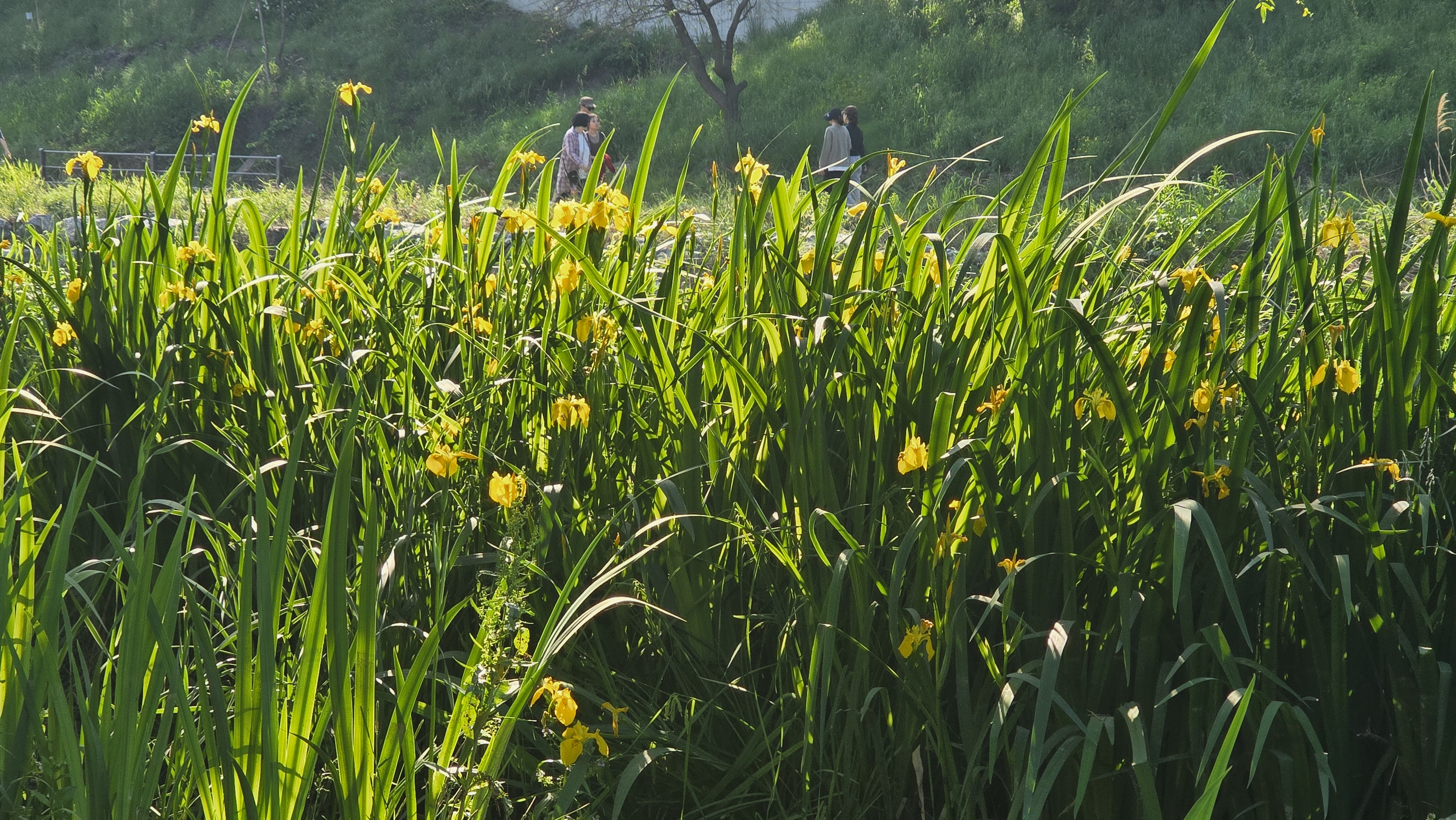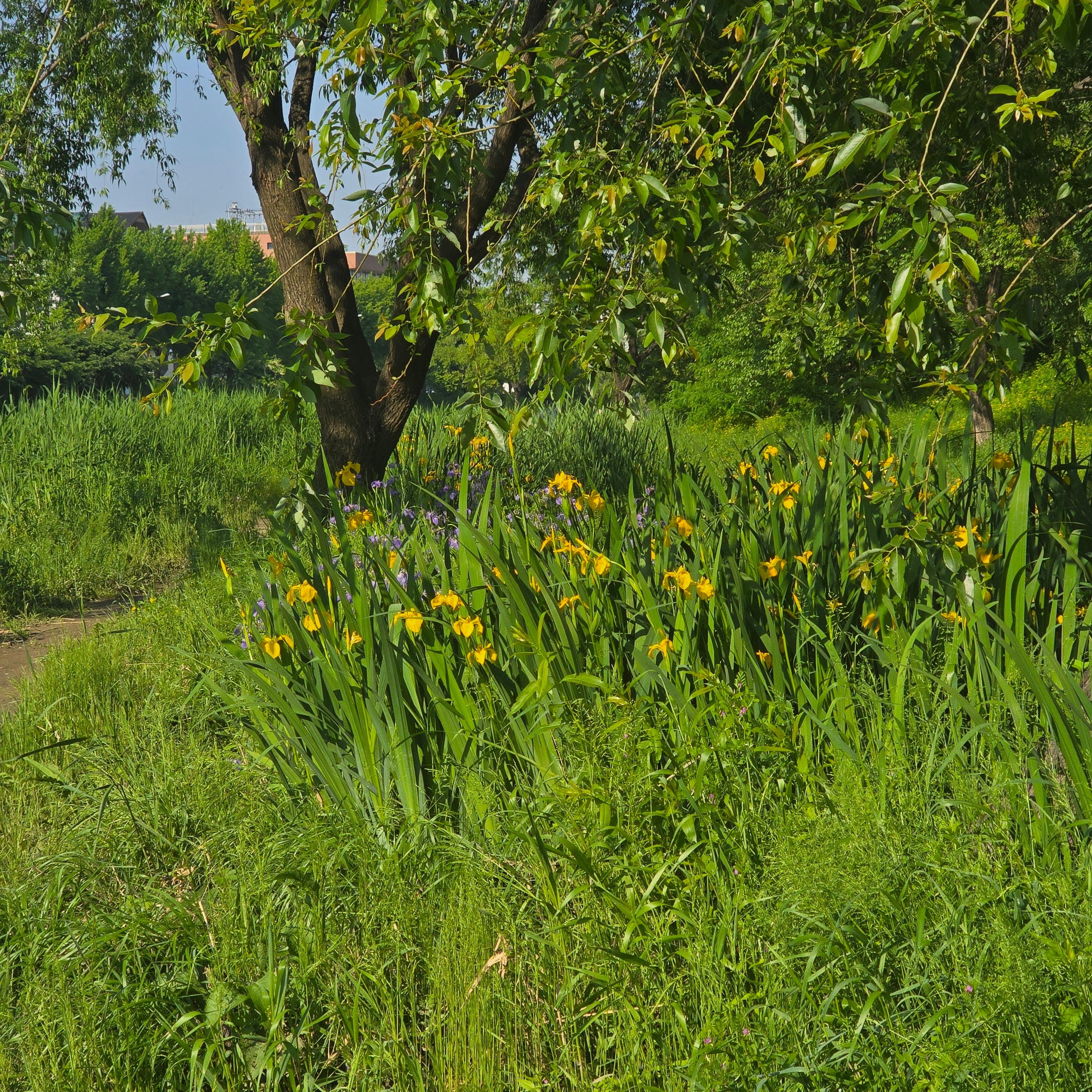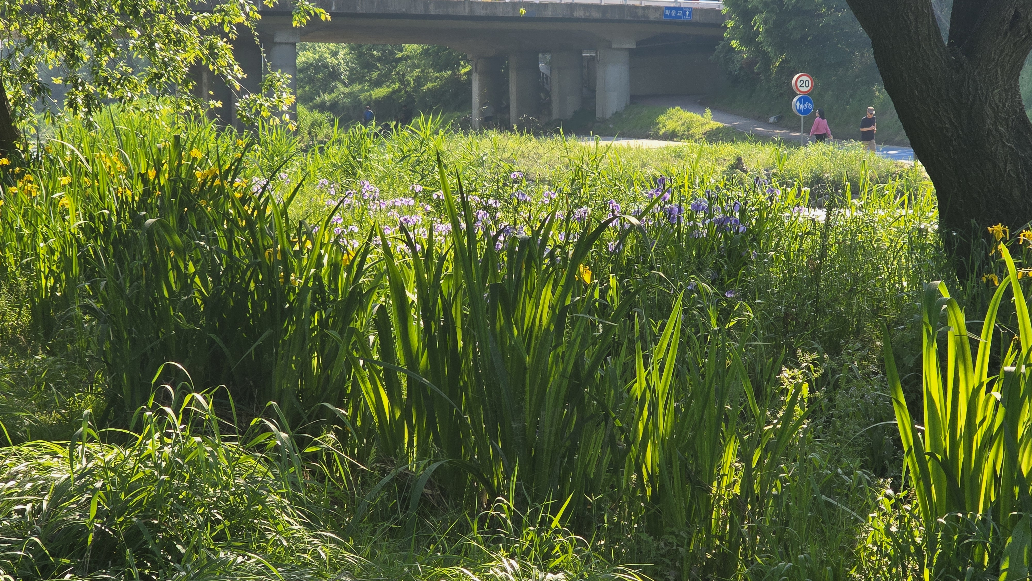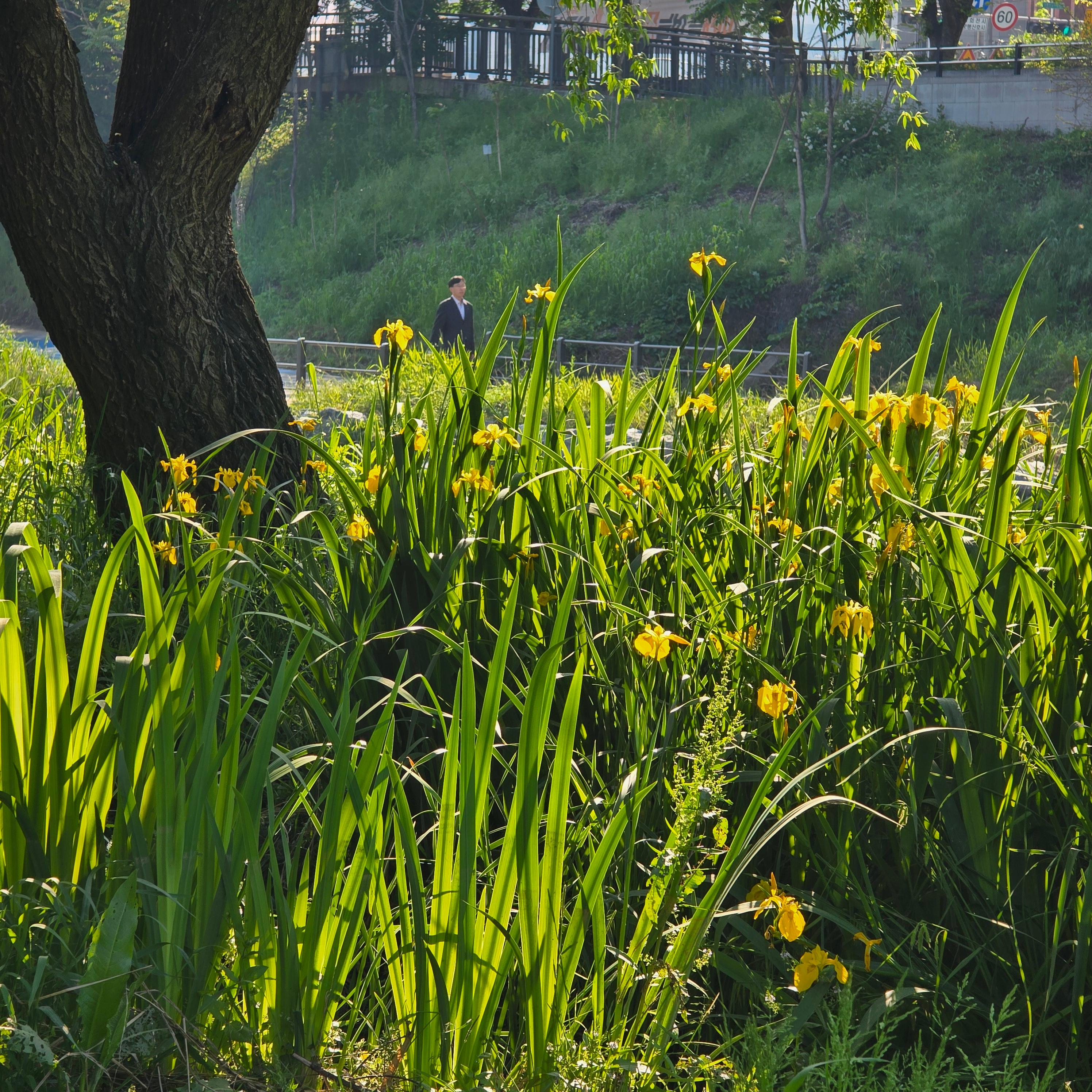2025.05.18/ #도시기록 #안양 #학의천 #학운습지/ 붓꽃과 노랑창포꽃 피고, 참개구리 울어대고, 새 소리 들리고, 산들바람 불면 녹색의 수양버들 가지 출렁이는 가장 예쁜 시기로 습지 물가 자그마한 의자에 앉아있으면 바람과 소리 그리고 햇빛 멍 때리기 굿이다.