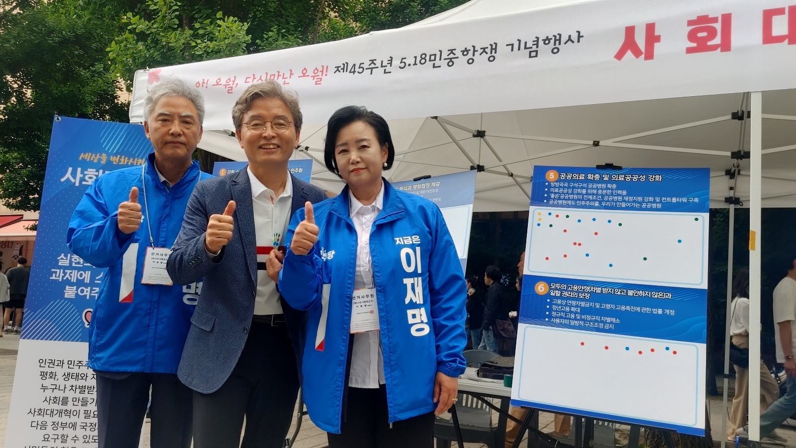 비상적 상황으로 21대 대선이 진행되고 있는 현실이지만 우리가 당면하고 있는 민생 몰락의 위기, 이제는 현실 재앙으로 다가온 기후·환경위기, 전쟁위기, 사회생명안전 위기를 극복해 역사정의를 실현을 위해 우리는 굳은 결기를 가지고 앞으로 전진해야 합니다. 그런 의미에서 올해 45주년이 되는해는 현재의 위협적인 요소들을 타파하고 앞으로 나아가는 오월, 시민들이 하나되어 광주민중항쟁의 빛의 정의를 실현하는 오월이 되어야 합니다.