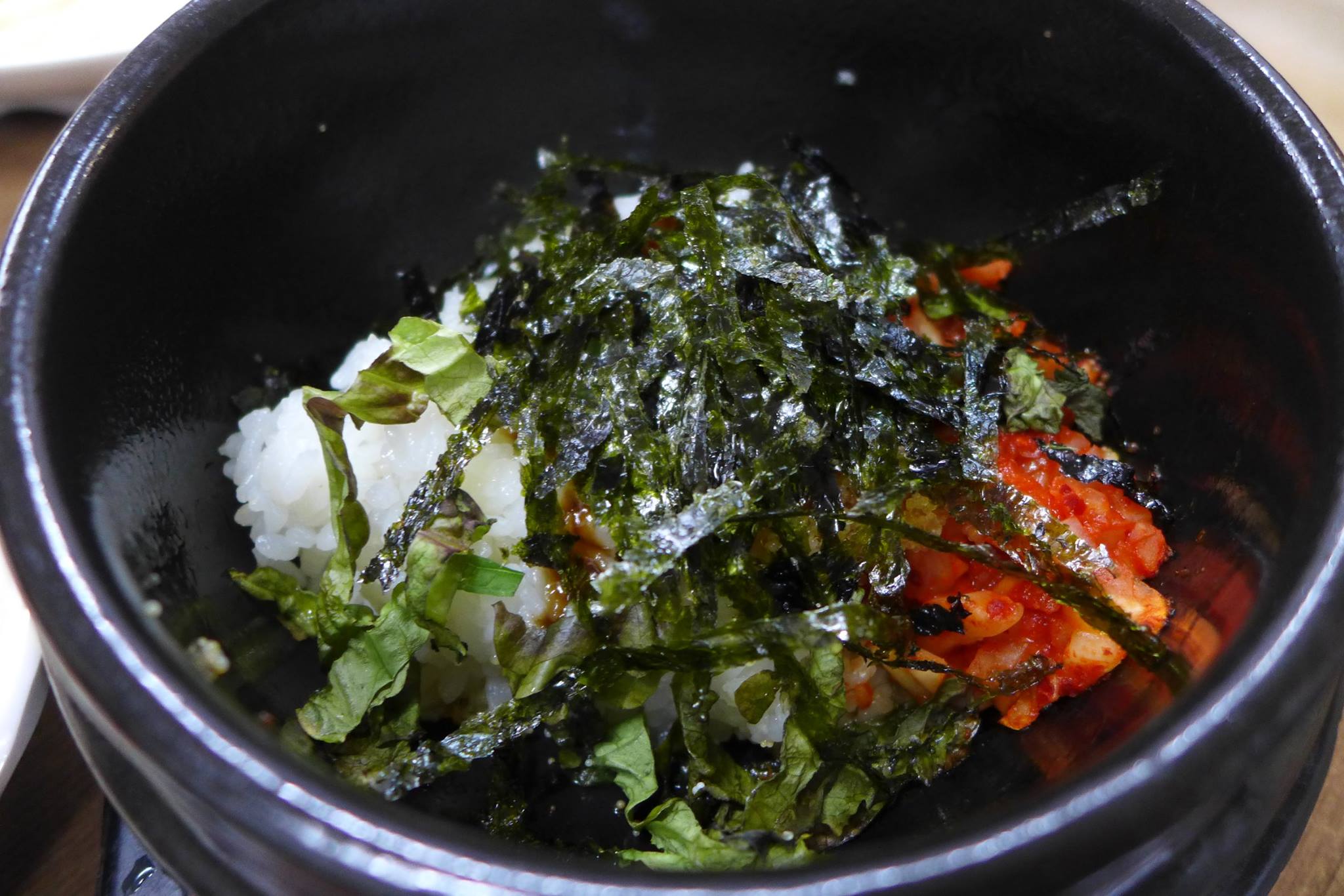 만주전골을 주문하면 에파타이저 만두가 나오고 이어 전골+칼국수, 알밥이 순서대로 나오며 그야말로 푸짐하다.
