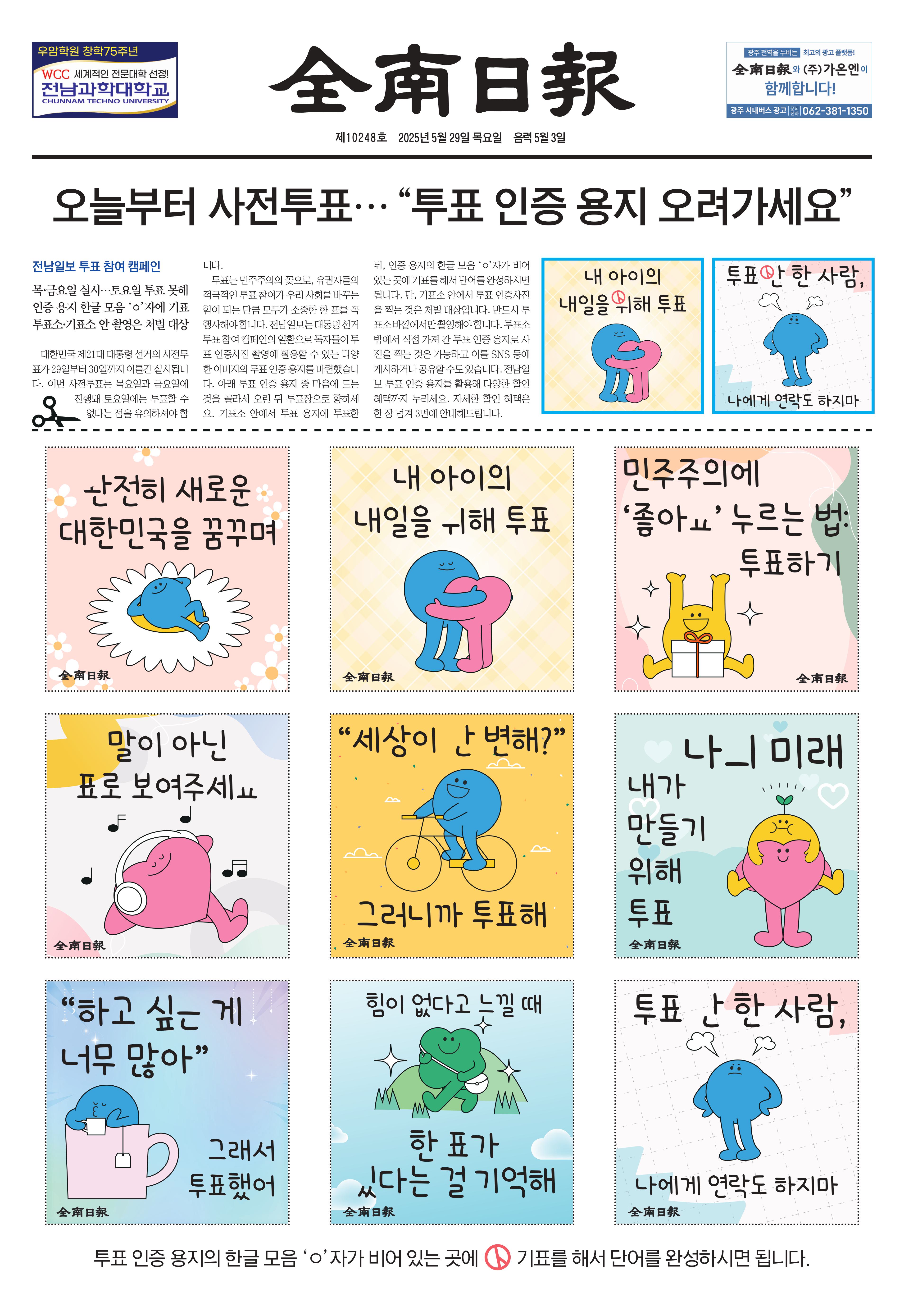 025.05.29/ #신문 #전남일보 #투표인증샷 #캐릭터 #디자인 #투표