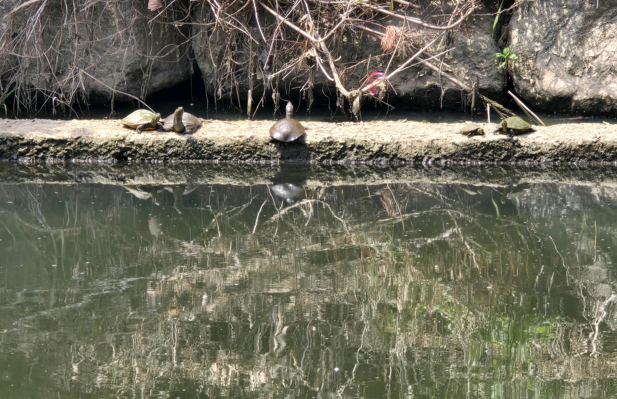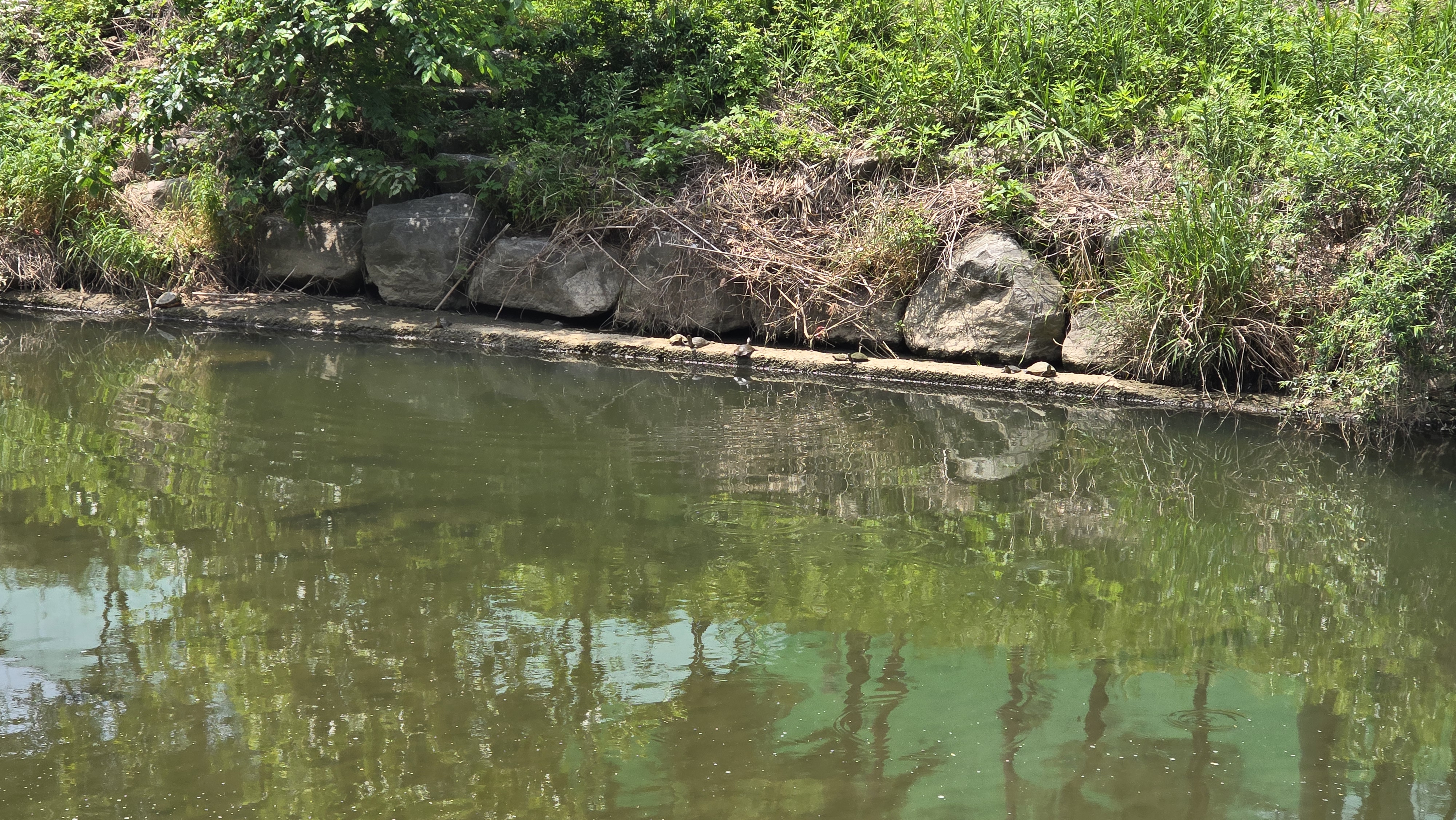 2025.05.26/ #도시기록 #자라 #안양천 #생태다양성 #모니터링/ 지난 5월 26일 안양천(구군포교~명학대교 구간) 모니터링을 하면서 갑자기 많아진 자라들을 발견하다. 금호교, 보령교, 안양천과 산본천 합류부 주변 등 3곳에서 크고 작은 자라 18마리를 목격함.