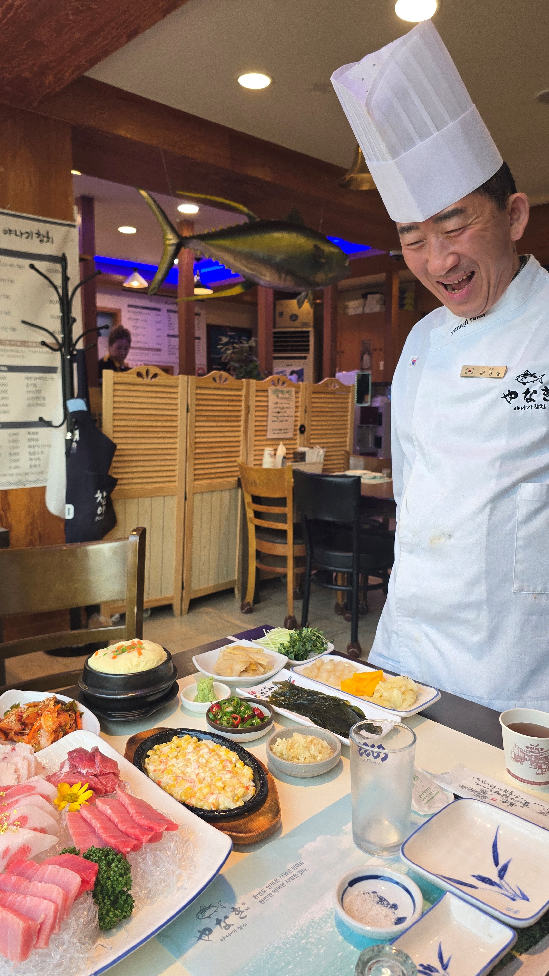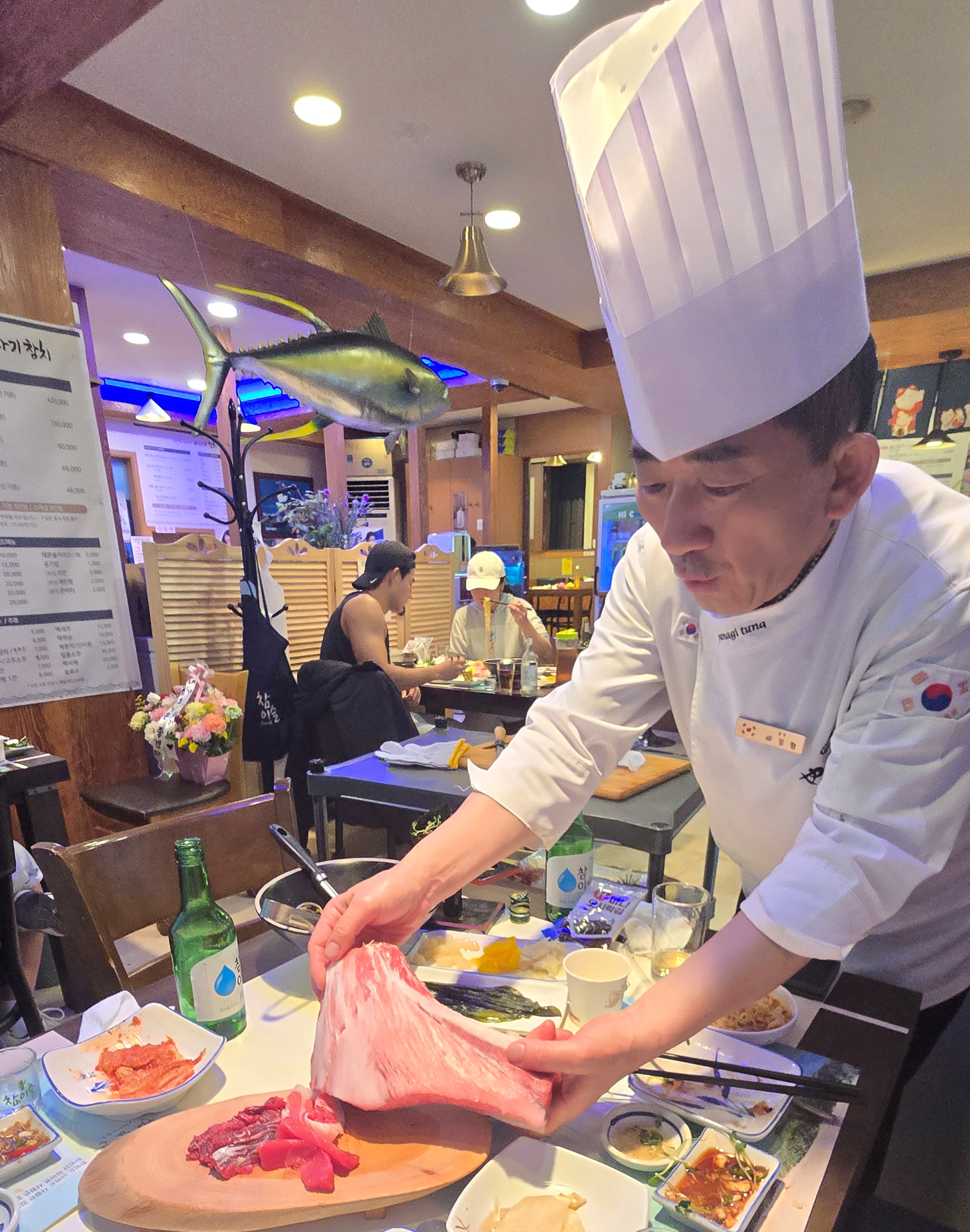 본격적으로 인상좋고 마음씨 좋은 실장(주인장)이 내주는 참치회를 다양하게 부위별로 맛보는 시간이 이어집니다. 고객을 위해 정성을 다하는 모습이 볼 수 있는데 혹여 참치회를 좋아하신다면 적극 추천하고픈 곳이랍니다.