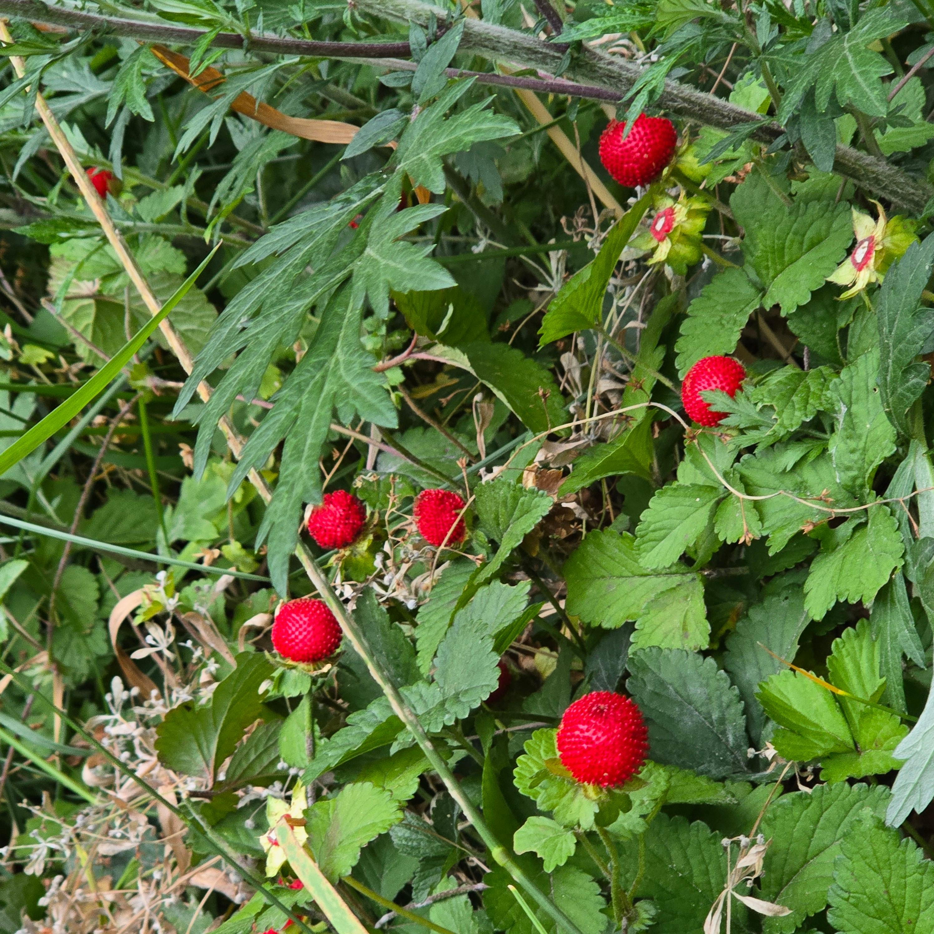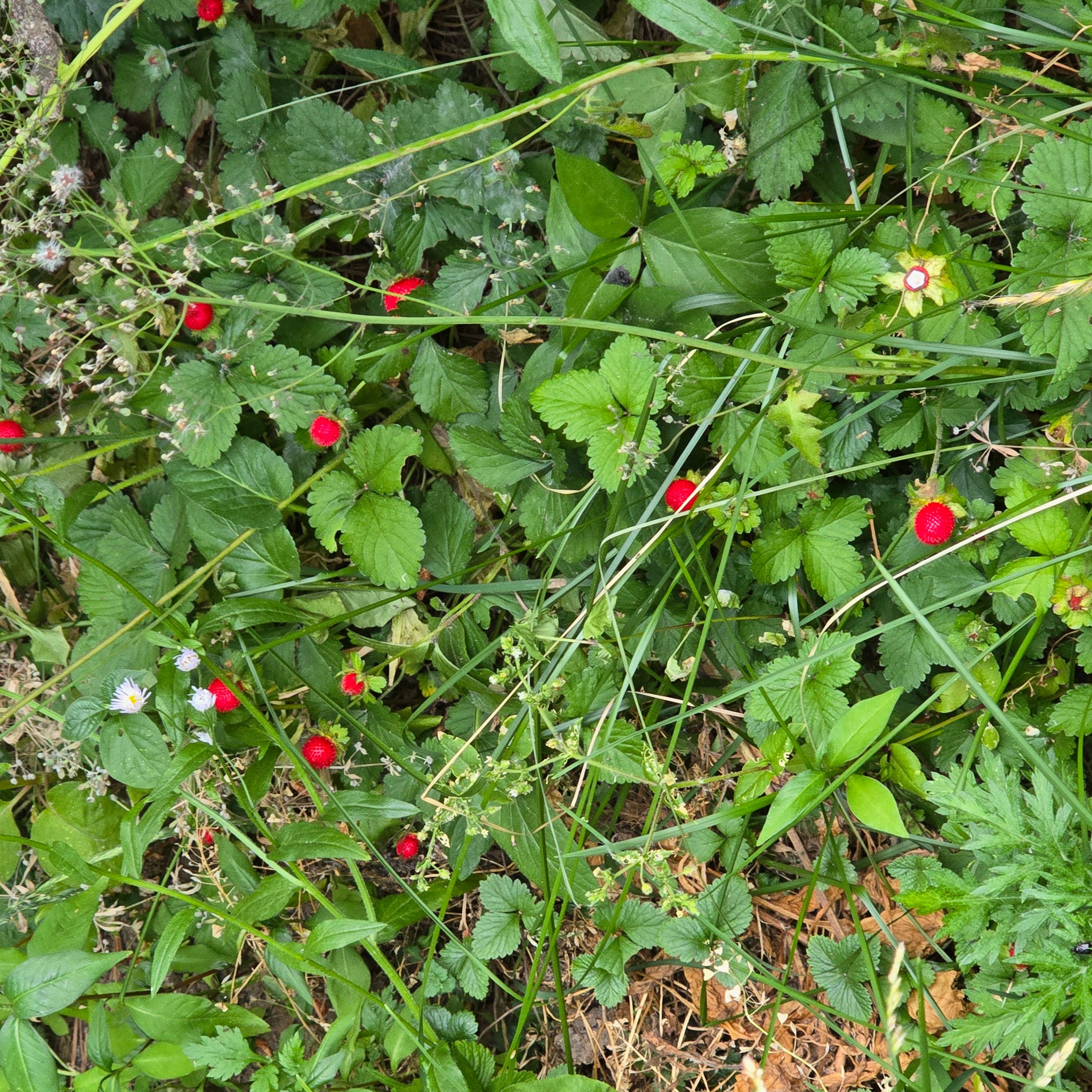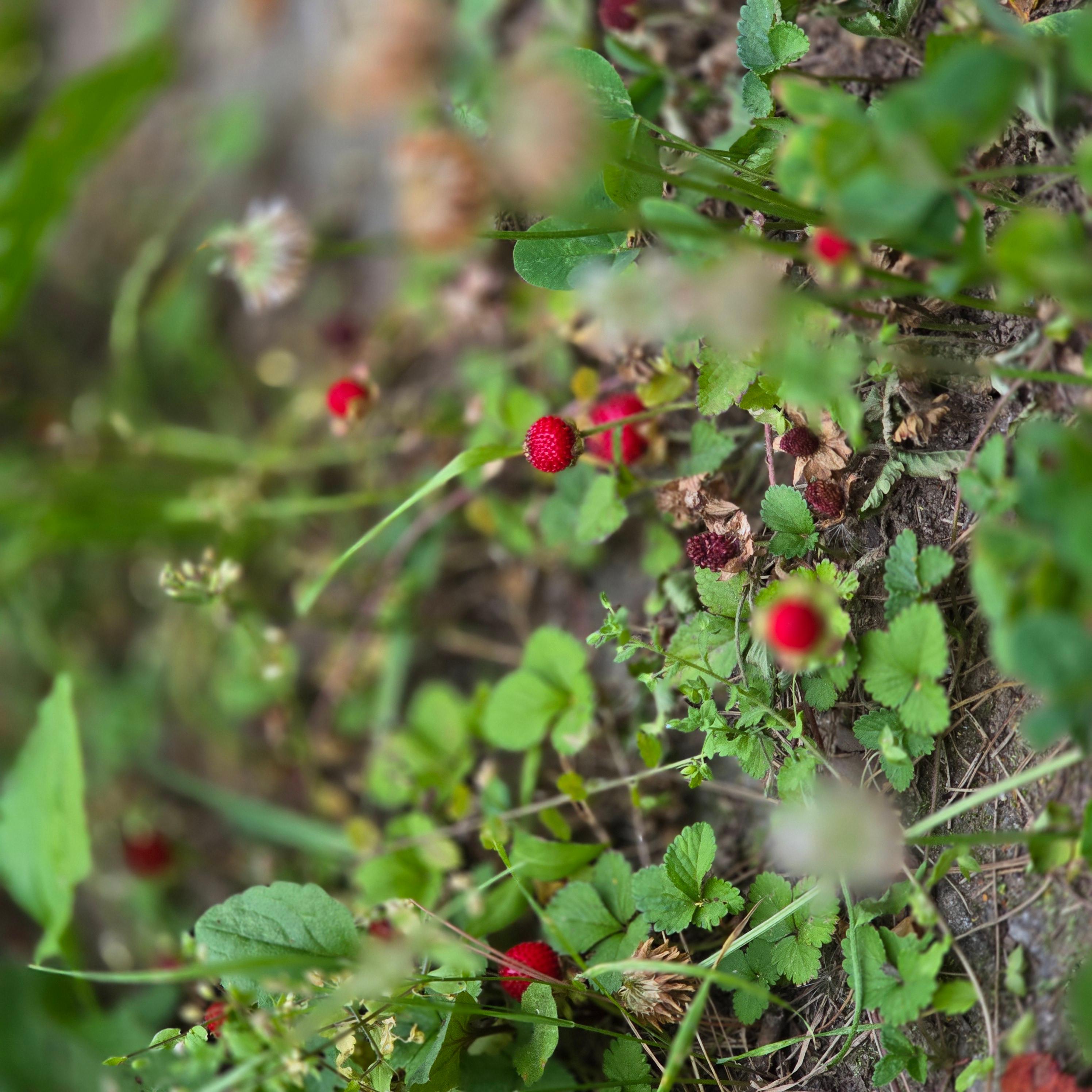 2025.06.07/ #도시기록 #안양 #뱀딸기. 안양6동 옛검역원 본관앞 정원에 뱀딸기가 지천이다. 정원 산책길을 걷다 보면 수풀속에 숨어있는 빨간 뱀딸기들이 얼굴을 삐쭘 내밀고 윙크를 한다.