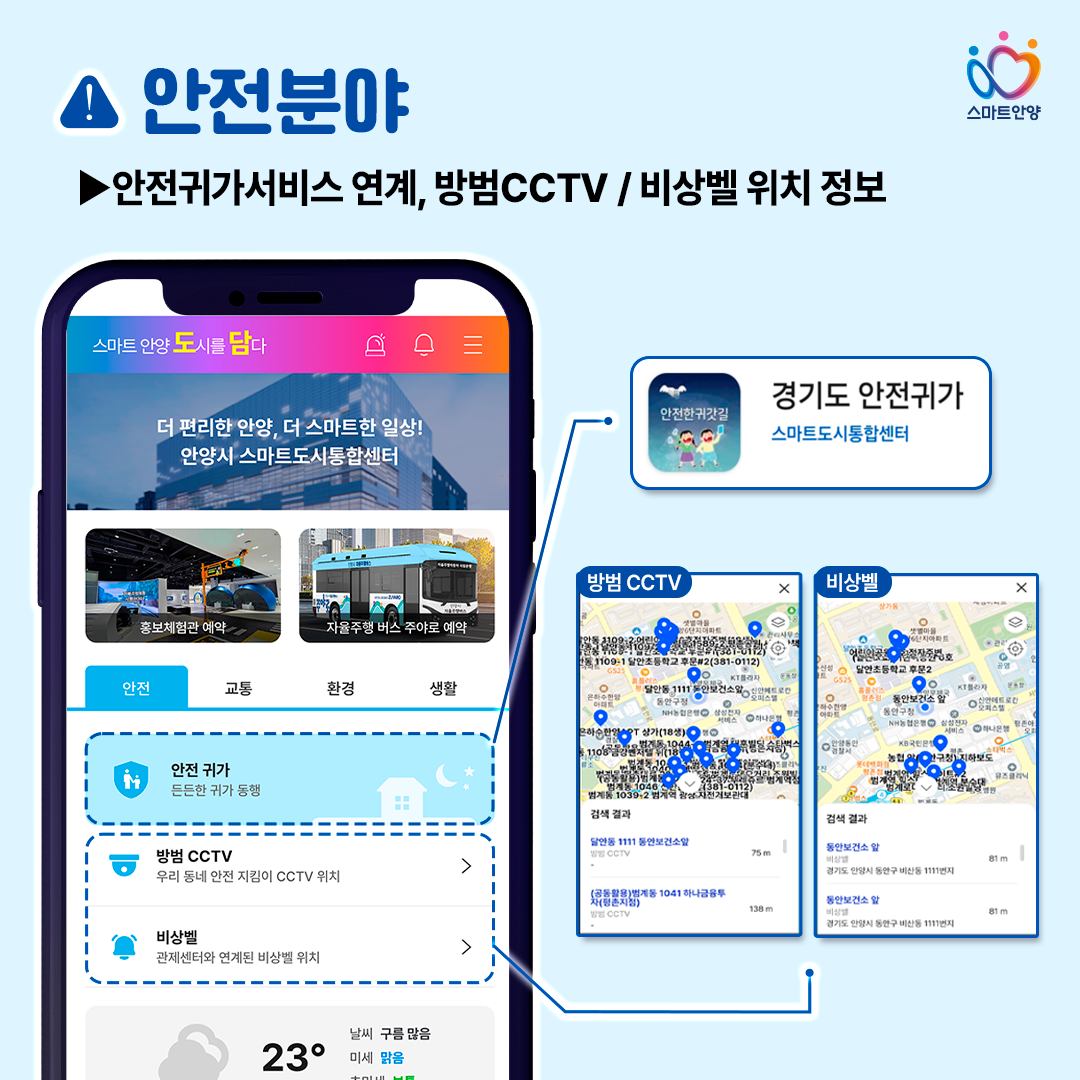 ‘스마트 안양 도담’은 스마트 도시통합센터가 실시간으로 수집·통합·관리하는 다양한 위치기반 도시정보를 통합해 제공하는 서비스로 지난 5월 안정화 기간을 거쳐 6월 1일부터 서비스 운영을 시작함에 따라 시민들은 생활에 필요한 도시 안전, 교통, 환경, 생활편의 등 다양한 정보들을 한눈에 확인할 수 있다.