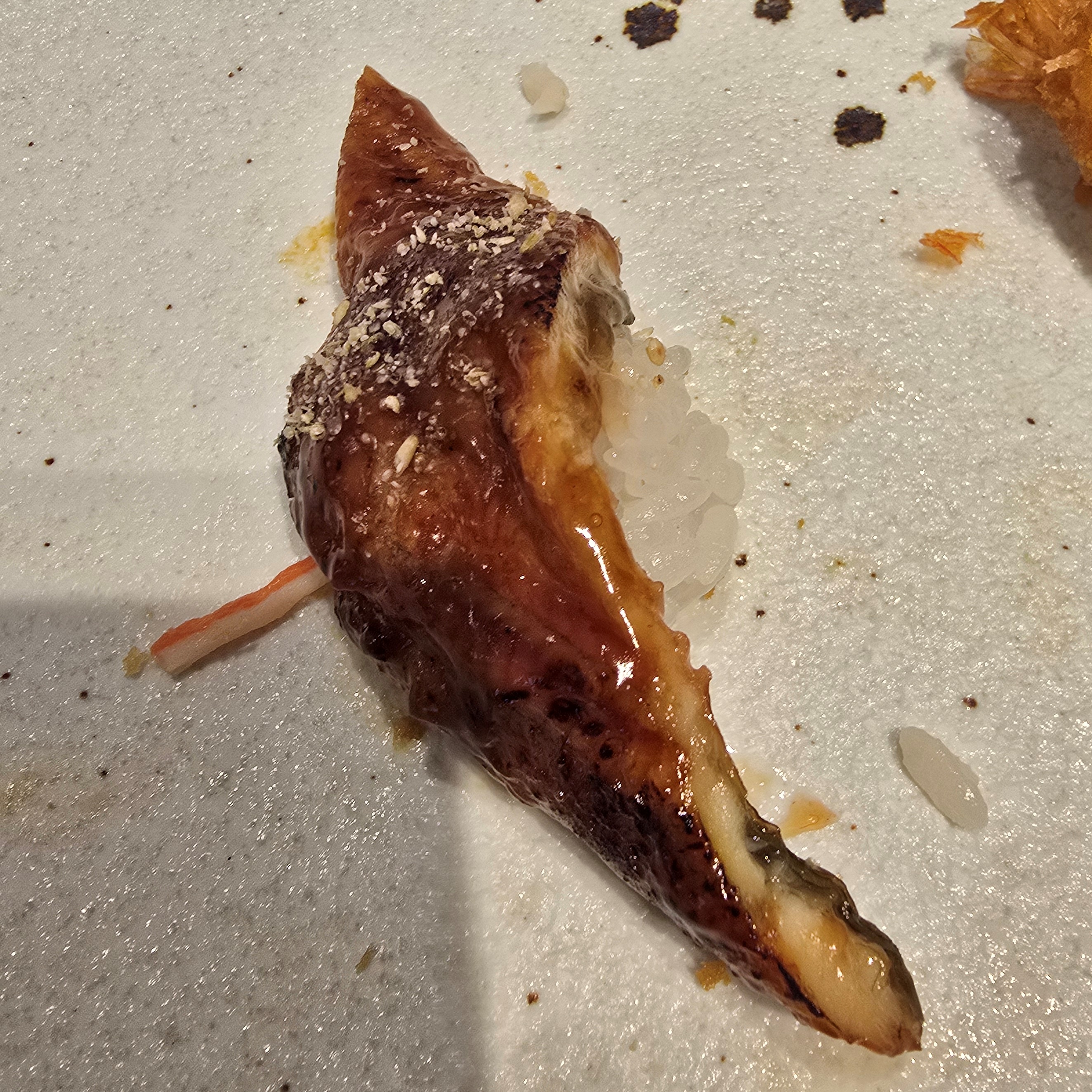 오사이 기본 초밥을 내주면서 식사가 시작되는데 런치의 경우 광어를 시작으로 연어초밥(부드럽고 퀄리티가 좋다), 토치로 지진 한치(쫄깃하구 향도 좋았다). 황새치 스테이크, 시그니처인 간장새우(부드럽고 식감도 좋음), 가지구이, 계란말이, 후토마키, 아귀간 안키모 등등 기본 초밥 순서가 끝나면 추가 피스로 주문한 메뉴를 만들어 주는데 이날에는 피스 세트1(우니, 장어, 도로, 왕새우튀김)을 맛보았다. 이후 미니우동과 후식으로 오미자 차가 나오면서 마무리되는데 식사시간은 약 40분 정도 소요된다.