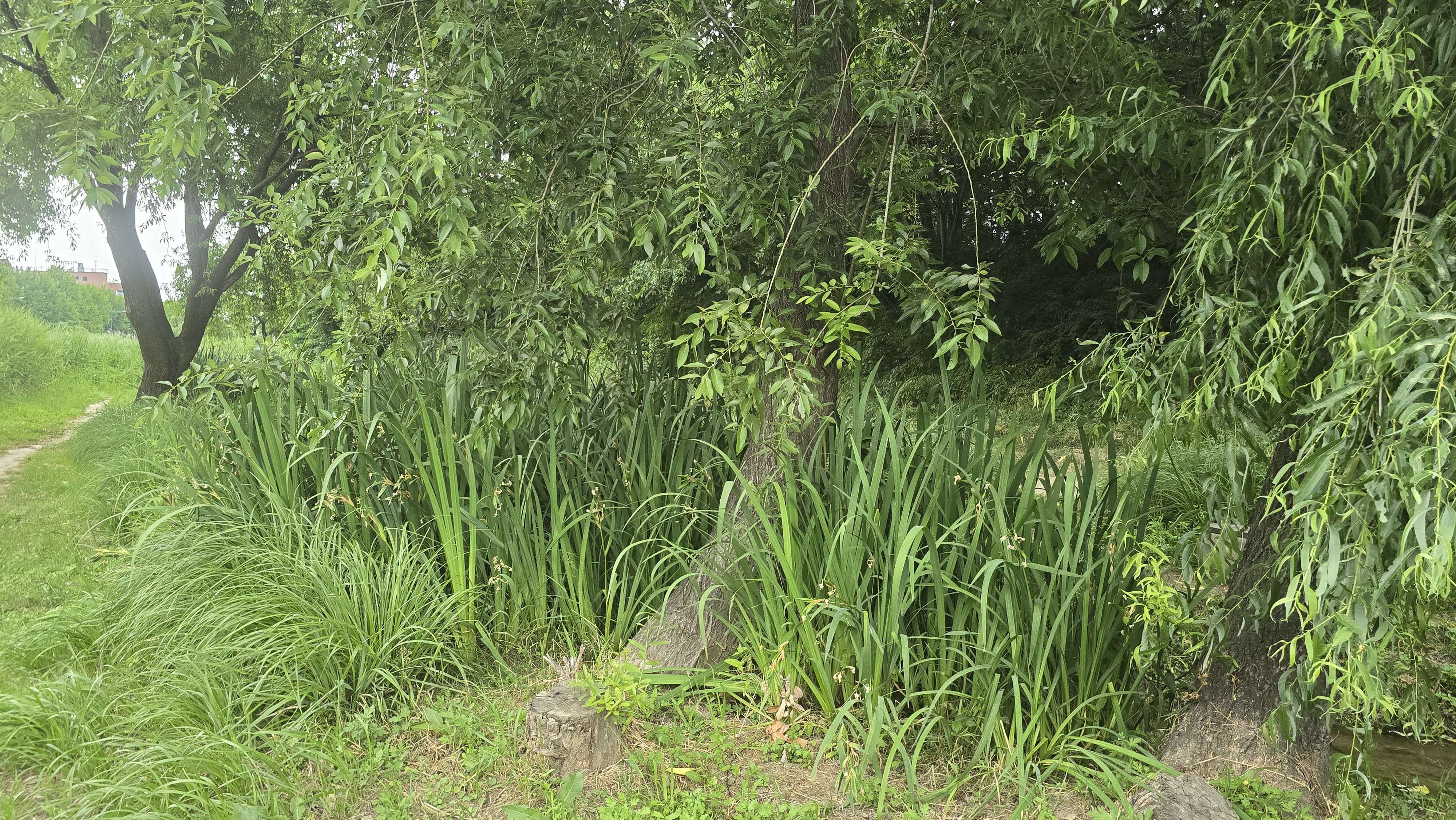 2025.06.15/ 도시기록 #안양 #학의천 #학운습지/ 물소리, 바람소리, 새소리 들리는 곳. 산들바람 불면 녹색의 수양버들 가지 출렁이는 가장 예쁜 시기로 습지 물가 자그마한 의자에 앉아있으면 바람과 소리 그리고 햇빛 멍 때리기 굿이다.