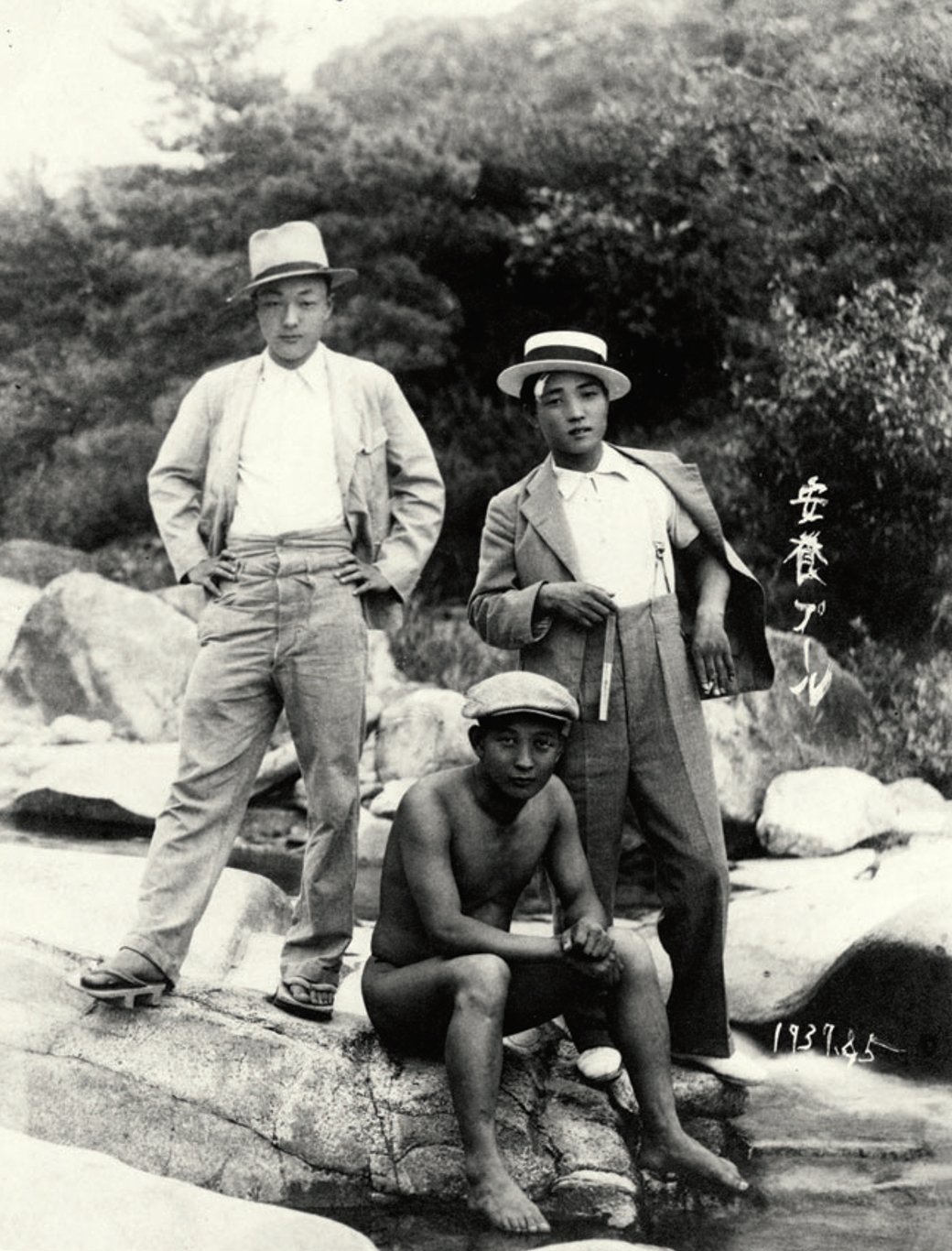 사진속 인물들은 당시 시흥군 안양에 사는 부잣집 청년들로 안양풀로 놀러온듯 싶다. 양복에 게다짝을 신은 모습이 가관이다.