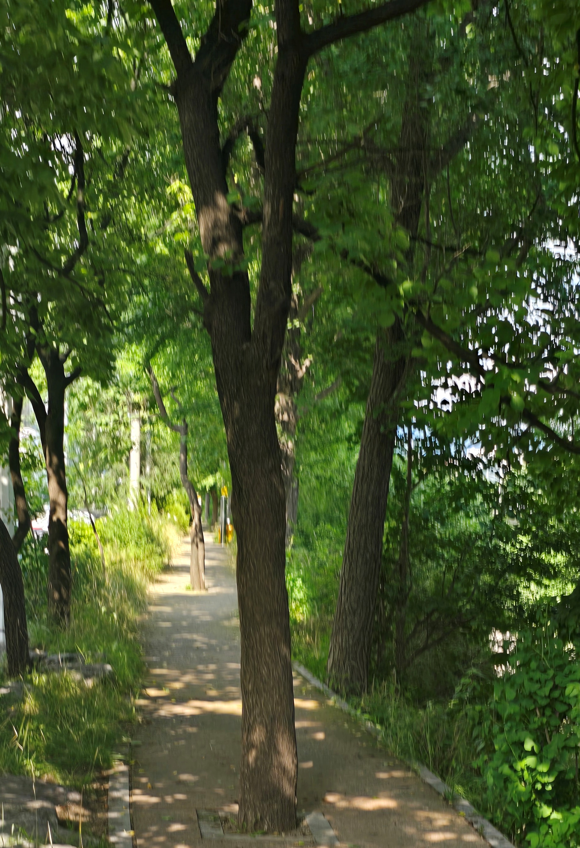2025.06.29/ #도시기록#안양#학의천#제방위#나무숲길/ 무더운 여름 뜨거운 햇살을 피해 걸을 수 있는 학의천 북단 뚝방길. 그늘이 있는 멋진 산책길이다. 코스는 안양 비산동 비산인도교부터 시작해 학운교-내비산교-수촌교-대한교-동안교-관양교-인덕원인도교까지 나무숲 터널이 이어진다. 봄에는 향긋한 꽃내음속에 노란개나리꽃을 감상하며. 여름에는 짙푸른 녹음을, 가을에는 노란은행잎 카페트를 밟으며, 겨울에는 소복소복 소리나는 하얀 눈을 밟으며 거닐수 있는 멋진길이다.