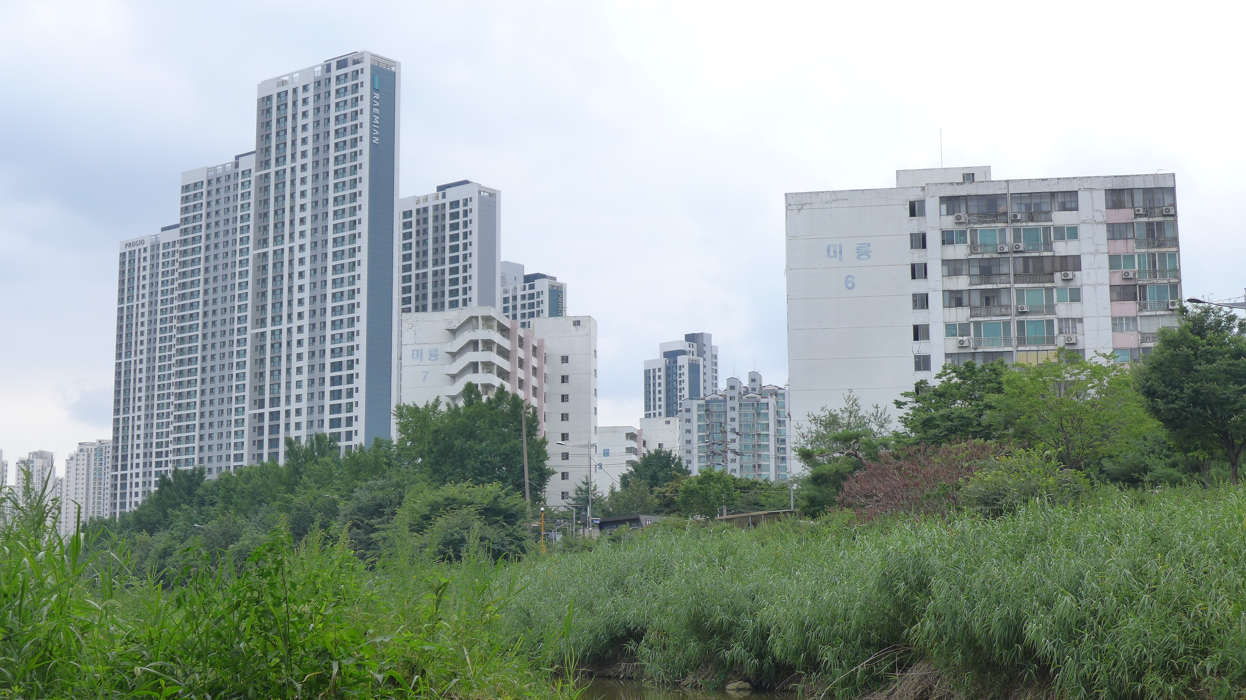 2025.07.06/ #도시기록 #안양 #미롱아파트 #비산2동 #since1979/ 안양 비산2동에 자리한 미룡아파트. 똑딱이가 학의천을 걸어가면서 윙크하다. 미륭아파트는 1979년에 준공된 아파트로 현재 안양에서 가장 오래된 아피트중 하나인 노포급 아파트단지다. 아파트 입주자들이 방 벽면에 못질을 하니 잘 박히지 않는다고 말할 만큼 콘크리트 강도가 단단해 튼튼하게 지었다고 소문났던 곳이다. 봄철에 하얀 벚꽃이 만개하면 이웃과 친지를 초대해 아파트 동네 잔치를 펼치기도 했던 곳이다. 수년전부터 추진중인 재건축을 둘러싸고 시공사 선정 논란으로 한동안 뒤숭숭했으며 결국 재건축으로 철거되어 사라질 날도 멀지 않은듯 싶다.