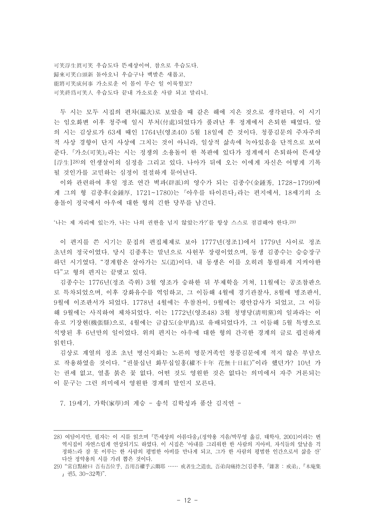 18세기 후반 탕평정국과 청풍김씨