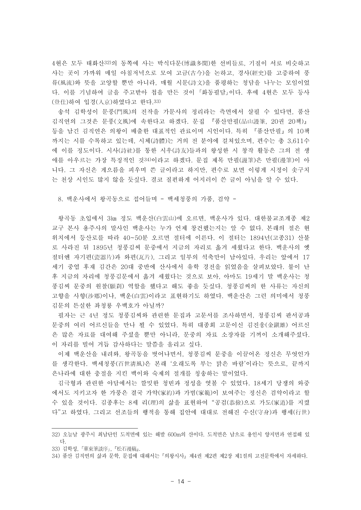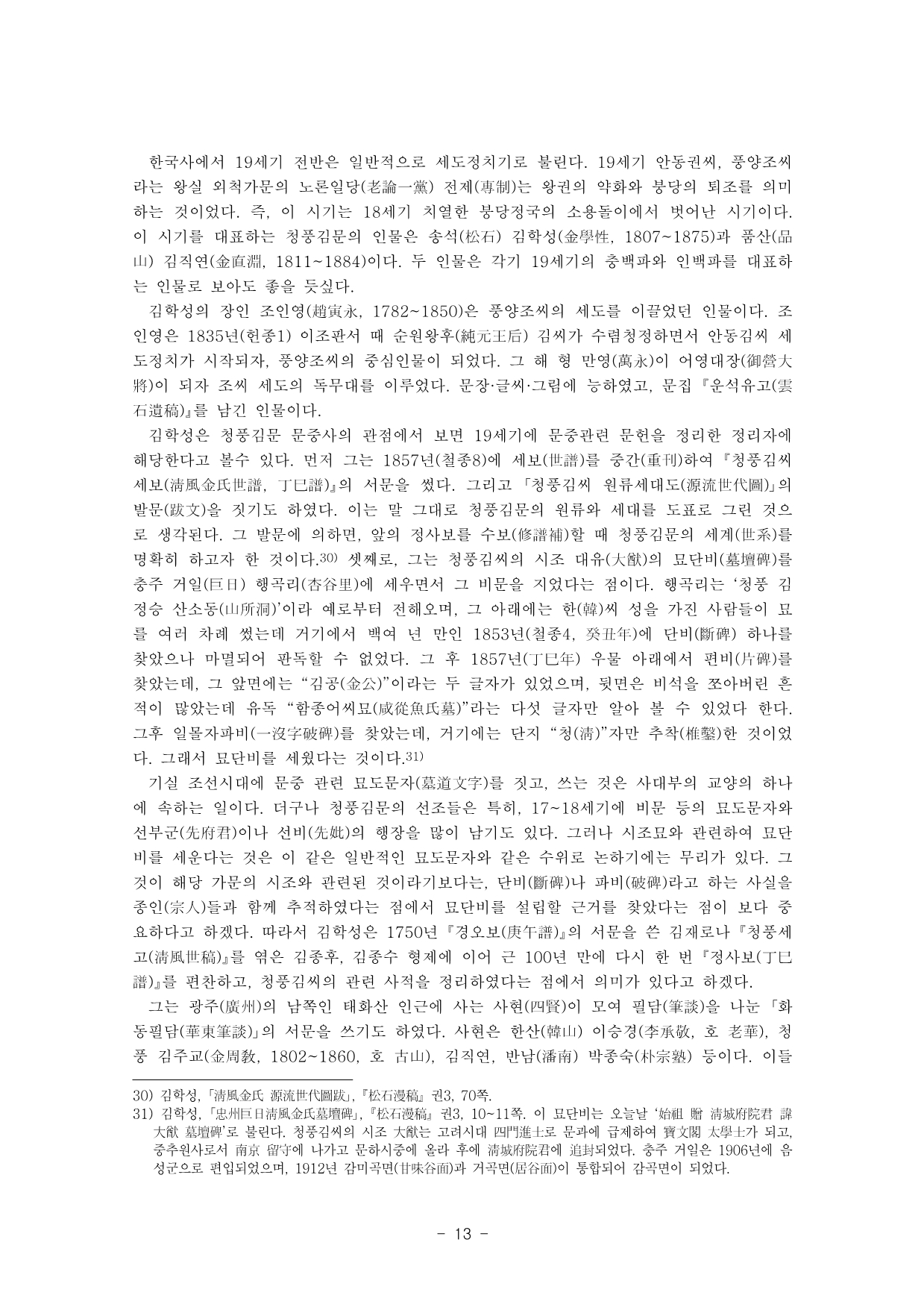 조선후기 왕림마을 청풍김씨 주요 인물