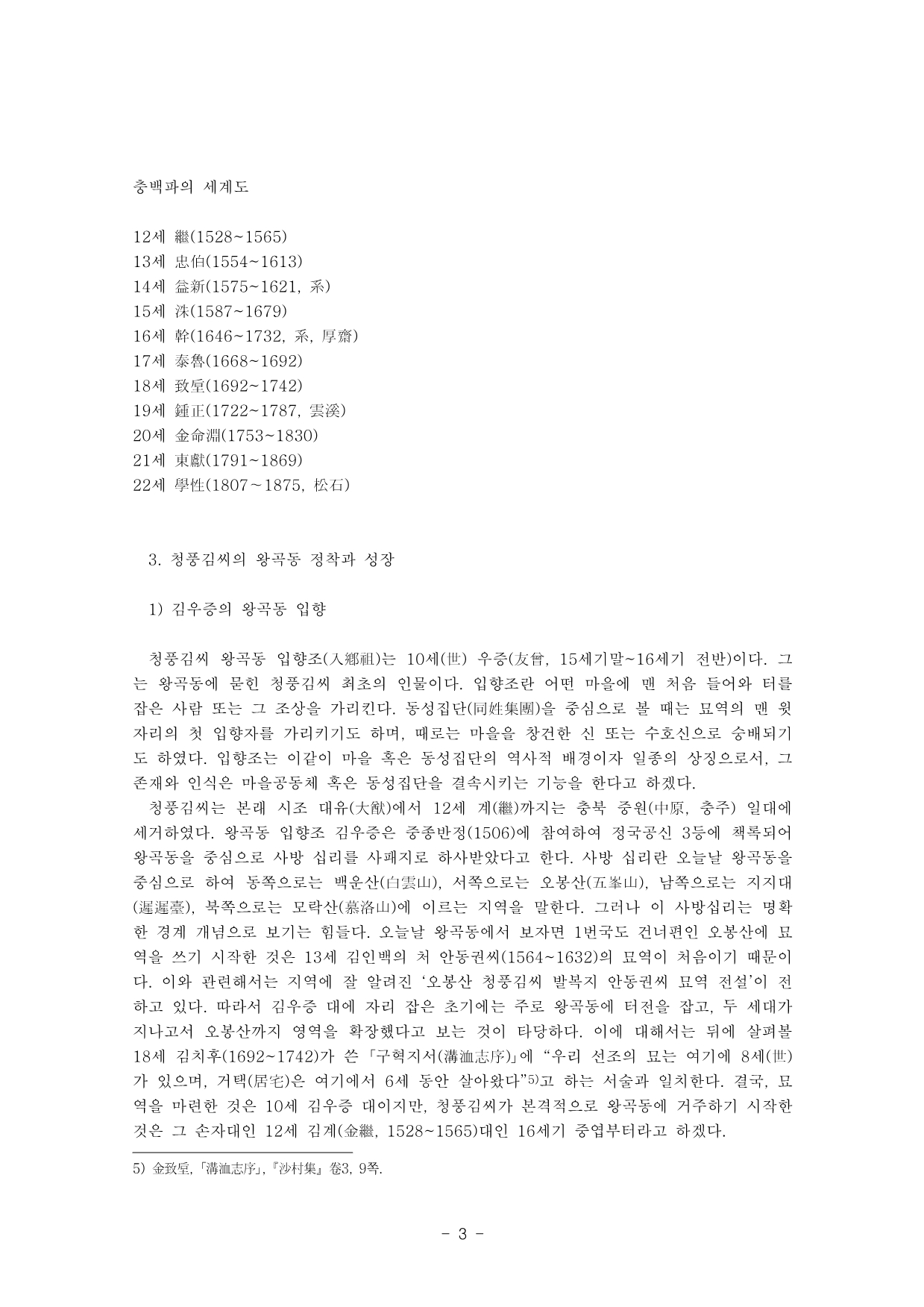 조선후기 왕림마을 청풍김씨 세계(世系)