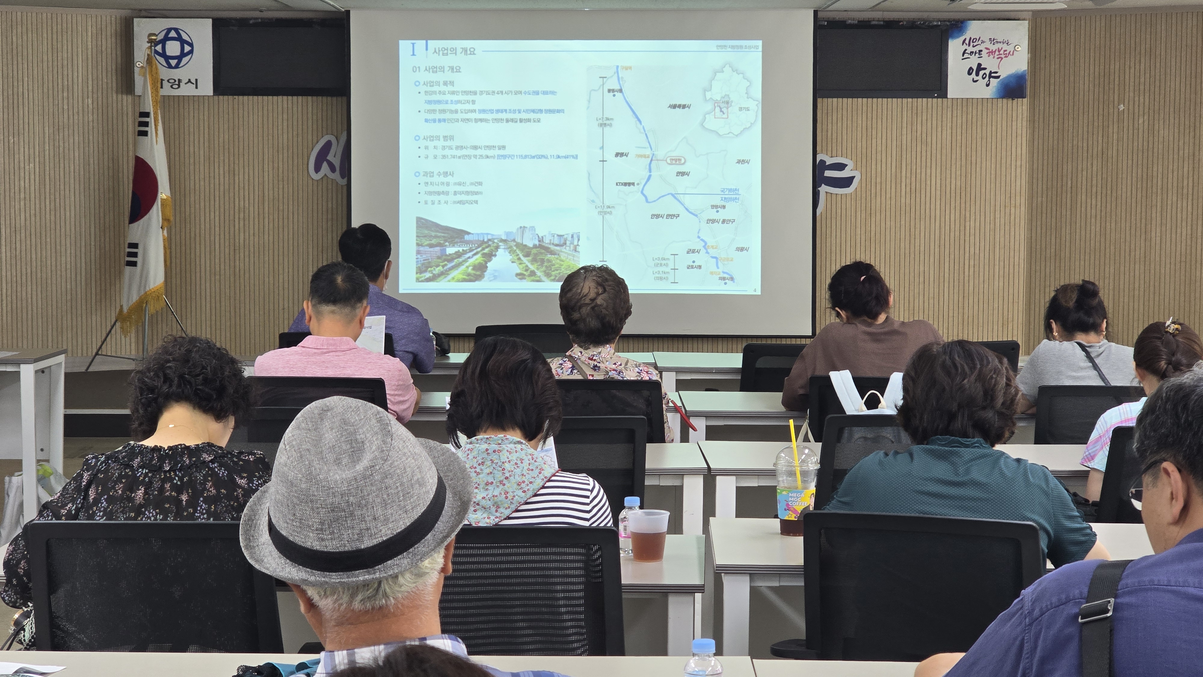 안양시가 지난 7월 11일 오후 안양시청 4층 대회의실에서 지방하천 조성사업 주민설명회를 개최했다. 이날 설명회에는 시민환경단체 관계자와 안양천 유역 주민 등 50여명이 참석했다. 하지만 시.도의원은 단 한명도 없었다.