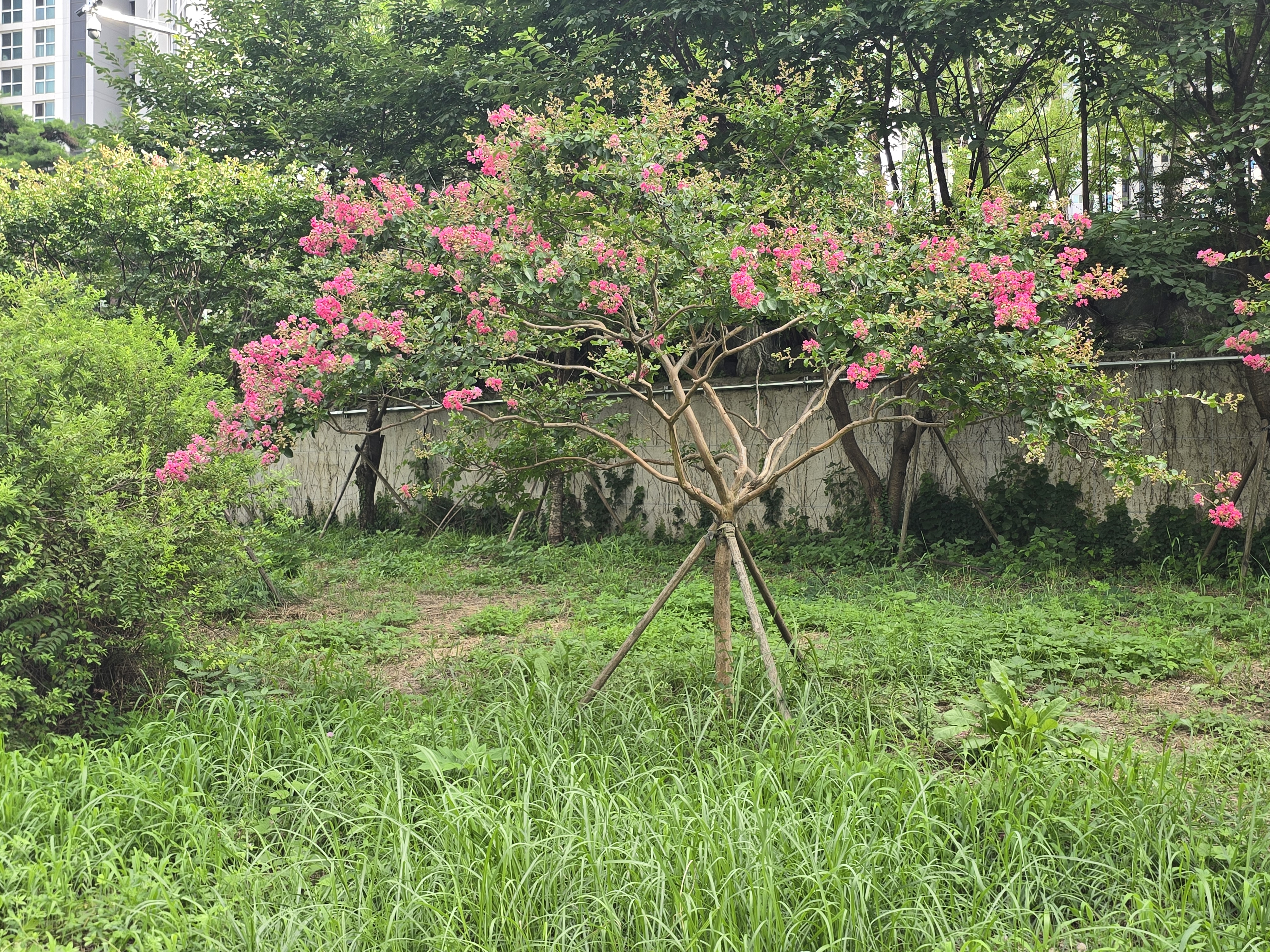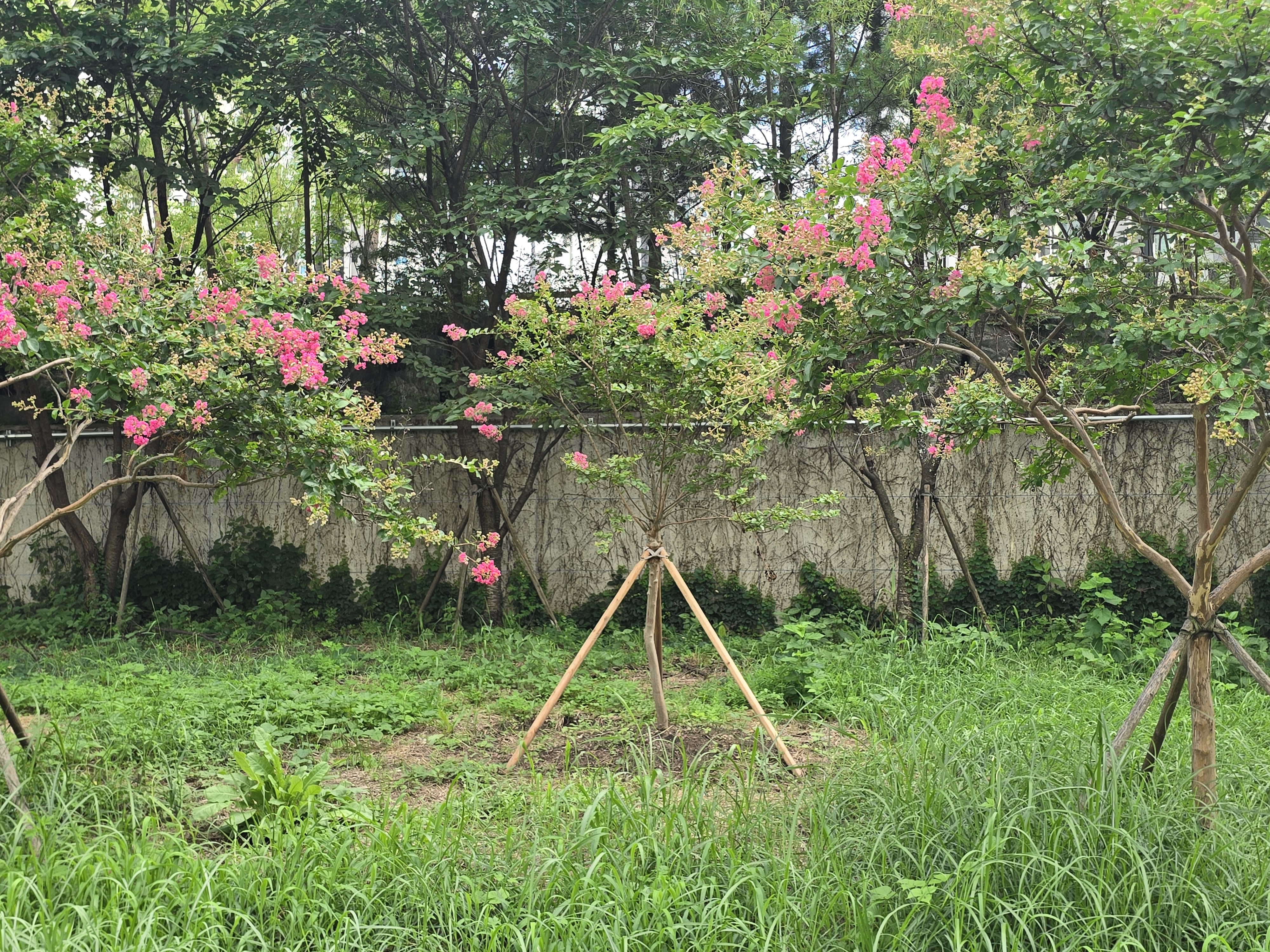 도시사진기록/골목풍경 [20250720]안양천 수백그루 나무 베어버린 안양시 배롱나무 심다 안양똑딱이 2025. 7. 20. 21:35 2025.07.20/ #도시기록 #안양 #생태 #배롱나무/ 여름 장마철 치수대책(비가 많이 올경우 부유물이 걸린다는 이유 등)과 건설교통부 하천관리기준을 근거로 안양천변 둔치는 물론 제방 사변에 심어진 뽕나무, 복숭아나무, 버드나무 등 수백그루의 나무들을 베어버린 안양시가 비산펌푸장옆(북쪽) 천변 둔치에 배롱나무를 새로 심었다. 무언가 앞뒤가 안맞는 안양천 관리 정책이다. 저작자표시 비영리 변경금지 (새창열림)