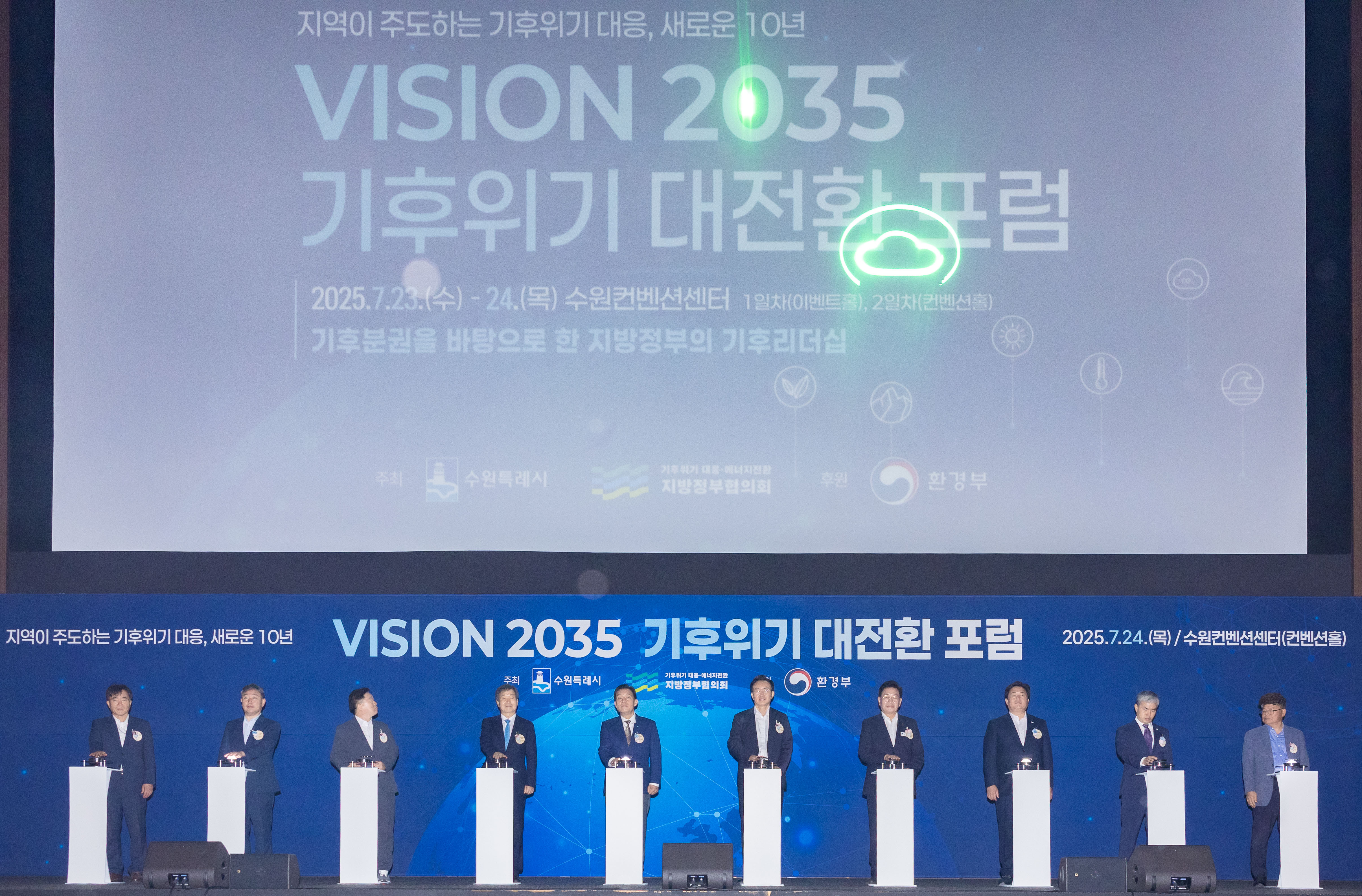 수원시와 ‘기후위기 대응·에너지전환 지방정부협의회’가 23일부터 24일까지 수원컨벤션센터에서 ‘지역의 경험과 기후분권을 바탕으로 한 지방정부의 기후리더십’ 을 주제로 ‘Vision 2035! 기후위기 대전환’ 포럼을 열었다.