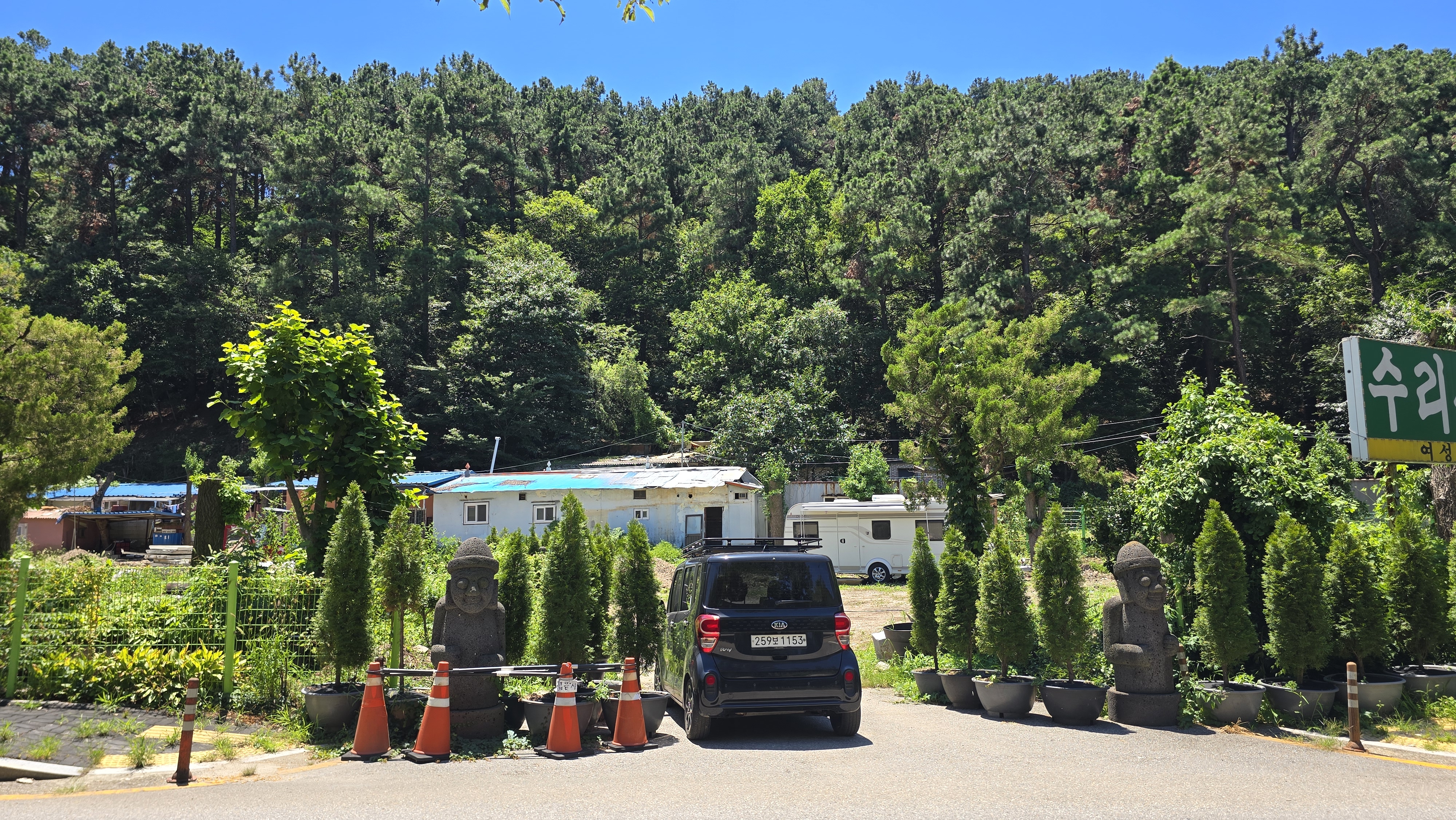 수리산 경기도립공원 안양쪽 관문인 안양9동에는 3개의 여성 전용 한증막(병목안2곳 창박골1곳)이 있다. 그중 가장 오래된 수리산한증원이 코로나 이후 문을 닫았다,. 폐업한후 수년간 방치되었던 곳이 매각된듯 부지 입구에 대형 제주둘하루방과 조형물이 자리잡고 담장을 따라 새로운 나무\들을 식재한 모습으로 바뛰었었다. 과연 무엇이 들어설까 궁금하다.