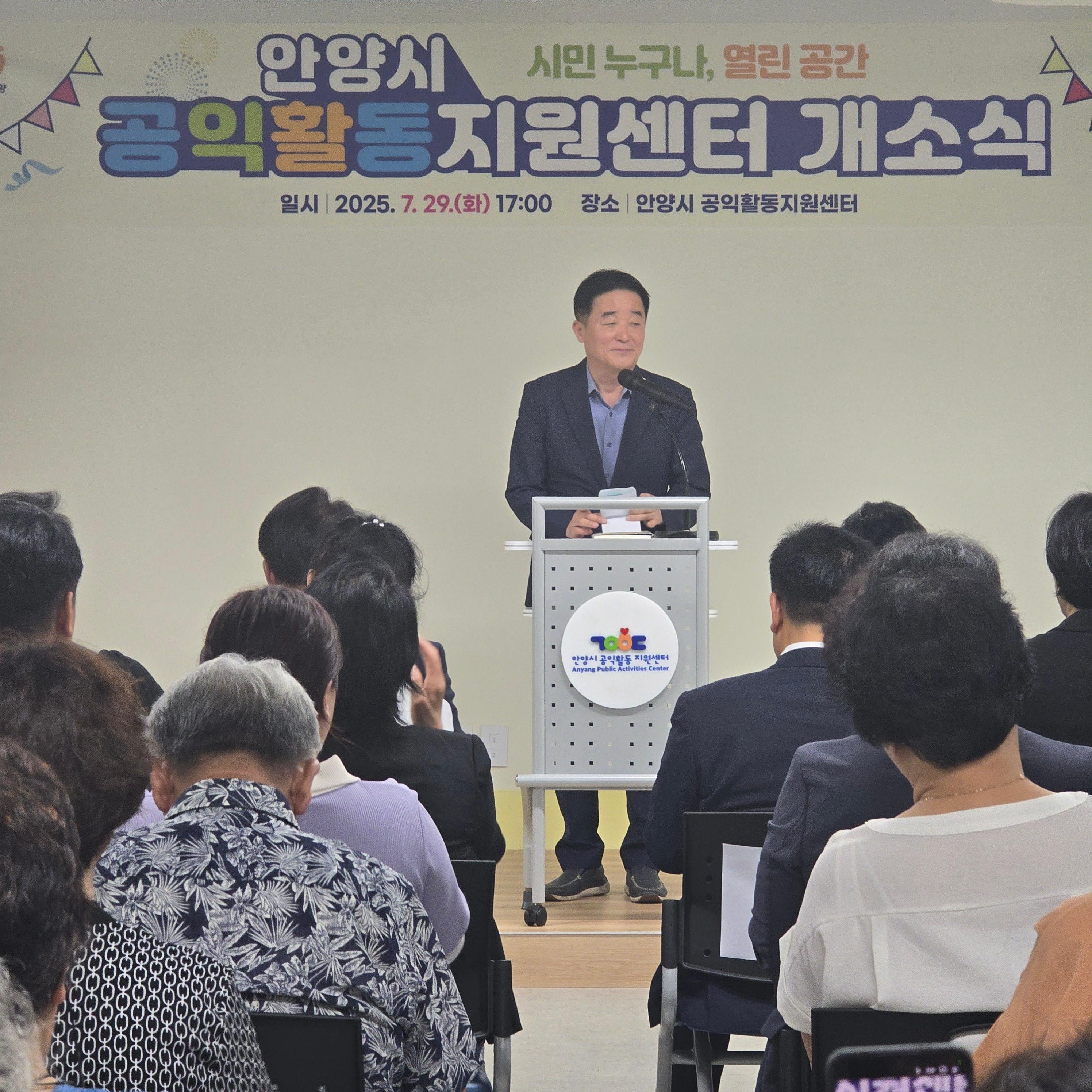 개소식 축사에서 최대호 안양시장은 “안양시 공익활동지원센터가 시민들의 공익활동 거점으로 자리 잡을 수 있도록 다양한 프로그램과 지원사업을 지속적으로 추진해 나갈 것”이라며 “시민들이 센터를 통해 자유롭게 공익활동을 펼칠 수 있길 기대한다”라고 말했다.