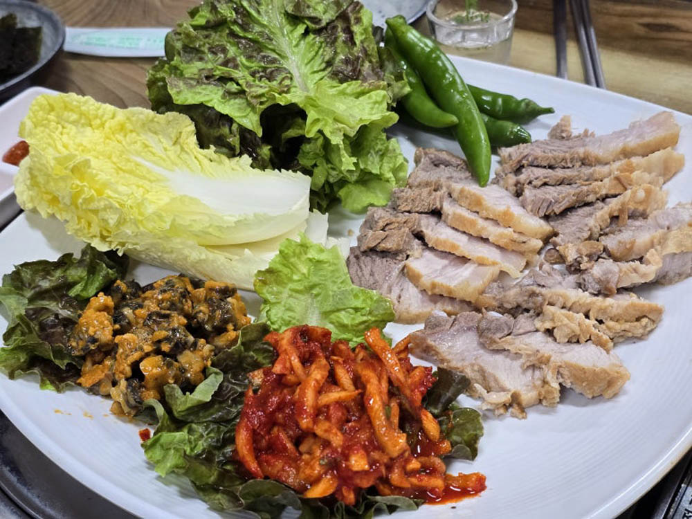 삼겹부위로 나온 보쌈고기는 살코기와 비계의 비율이 적당하여 느끼하지 않게 먹을 수 있었다. 특히 무말랭이와 우렁된장 조합이 너무 좋았다.명학골에서만 볼수 있는 우렁된장 조합으로 함께 싸먹으면 쌈장을 따로 넣지 않아도 감칠맛이 돈다