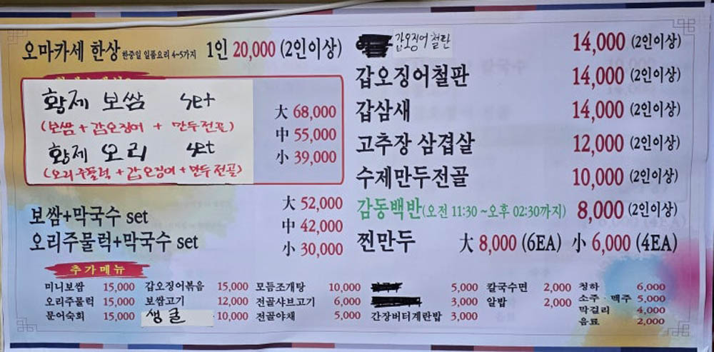 2만원짜리 오마카세치곤 괜찮은 듯 안 괜찮은 듯 경계선에 있는데 일부 메뉴가 개인적 입맛에 아쉬웠지만 주력 메뉴인 보쌈이나 만두전골만큼은 퀄리티가 좋았다.