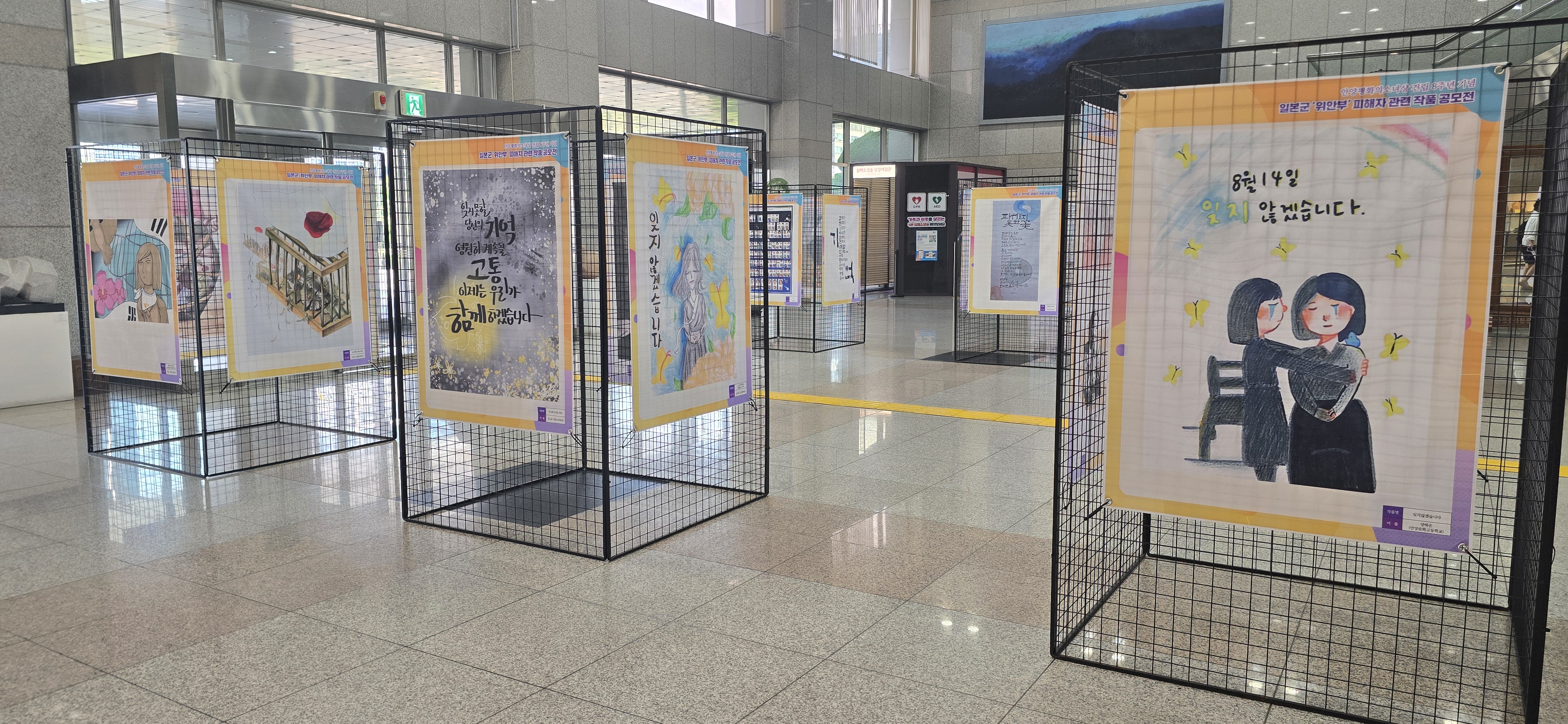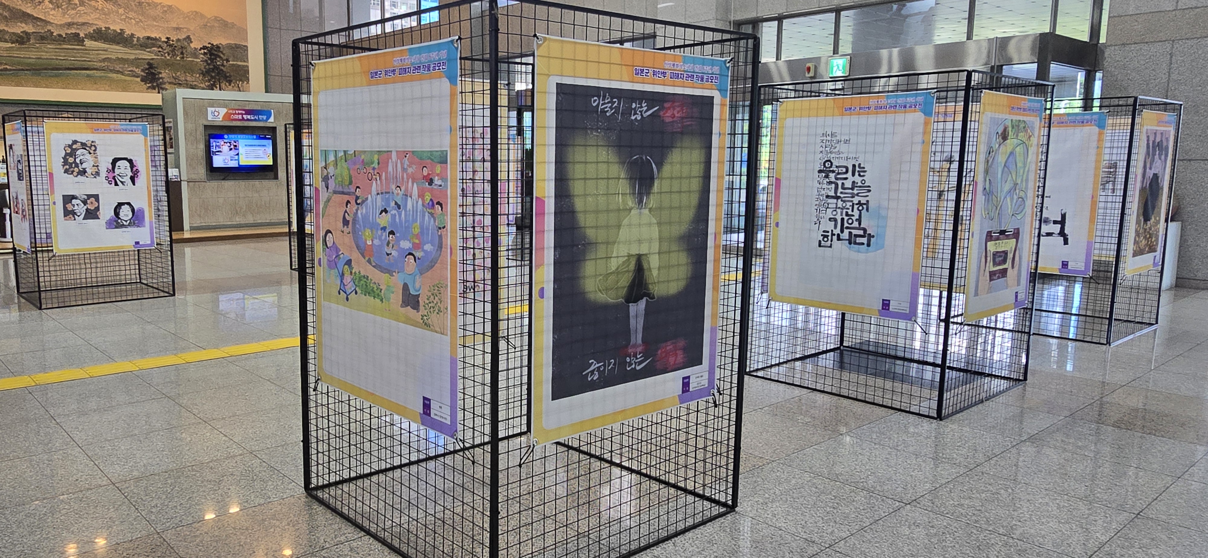 전시회에는 공모전을 통해 뽑힌 포스터(일러스트 분야) 작품으로 ‘김복동 할머니상’을 받은 안양시민학교 등 6명의 작품과 공모전의 수상 작품 및 출품작을 만나볼 수 있다.