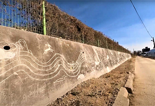그런데 오히려 이런 접근이 새로운 형식어를 발굴해내는 계기가 되기도 했다. 어차피 복원할 수 없는 장소성을 부여잡는 대신 임시거처로 비닐하우스를 세워 프로젝트의 거점이자 전시장으로 활용했다. 철도역과 왕송호수 사이에 놓인 비닐하우스는 정주하지도 못하고 지속되지 못하는 도시민의 삶의 상징이자, 이 현실을 자각하고 관심을 모으고 소문을 내는 공적 장소로서 역할을 했다. 상투화되어 기피 대상이 된 벽화는 시민적 참여가 참신한 시각적 솔루션-페인팅이 아니라 벽을 긁어내는 방식 등과 만나 반구대 암각화 같은 기념비적인 작품을 창출해냈다.
