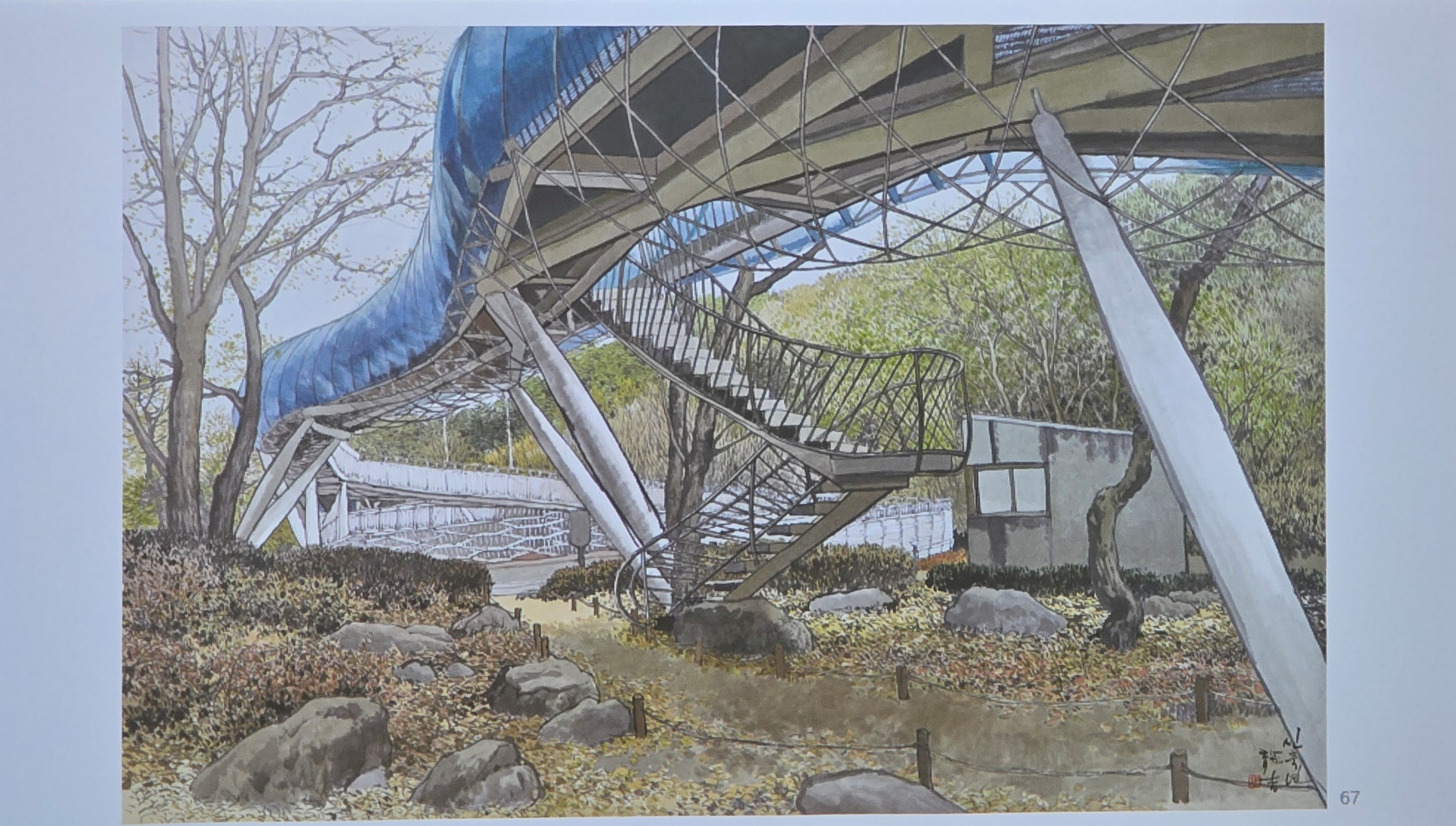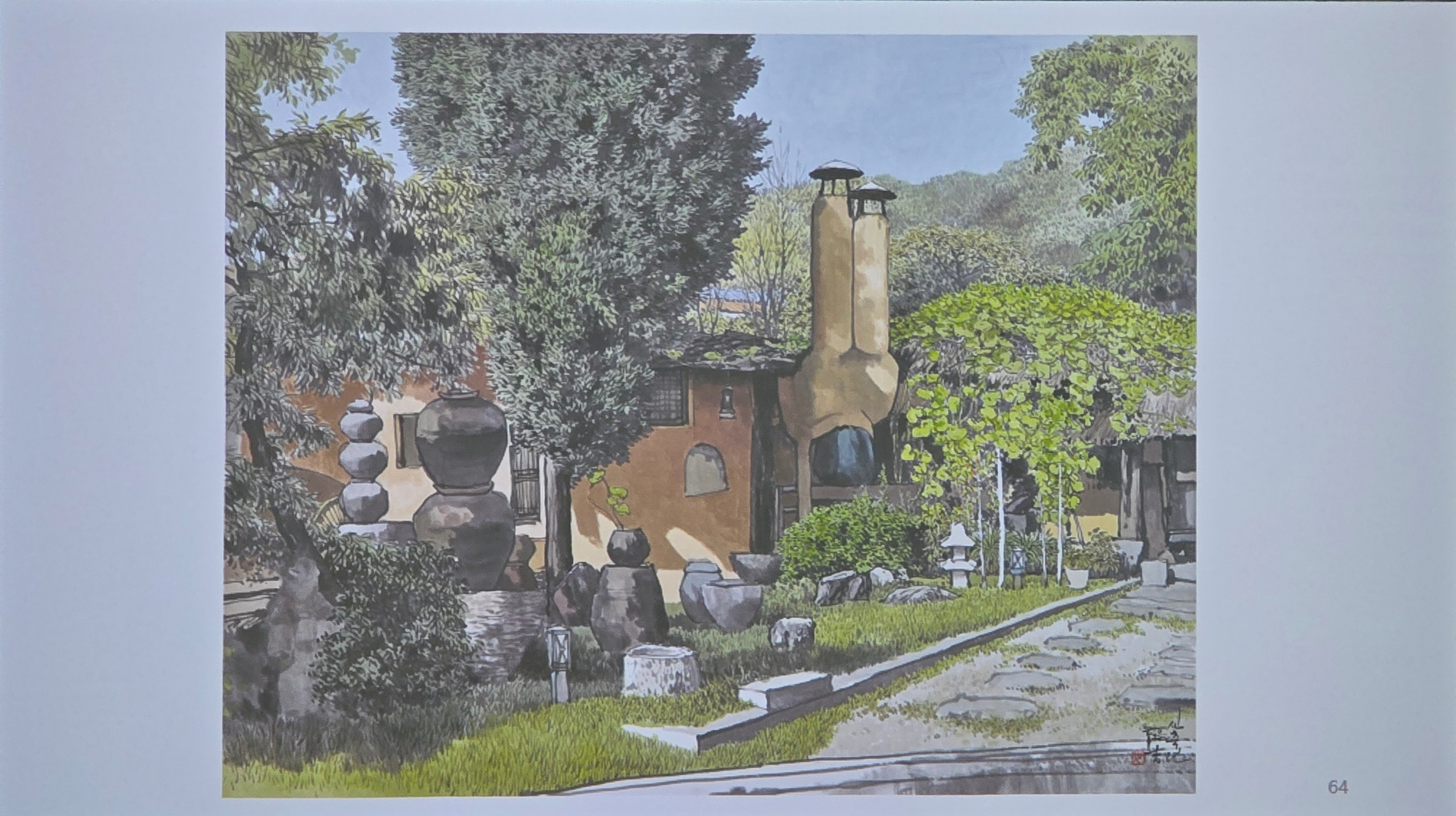 그를 실경화가로 부르기도 하지만 그의 그림이 모두 실경은 아니다. 실제 가 본 곳도 있지만 사진으로만 본 곳도 있고, 실제 풍경에 사람을 그려 넣거나 아직 피지 않은 꽃을 그려 넣는 등 자신만의 '조경'으로 새로운 풍경을 만들어내기도 한다.