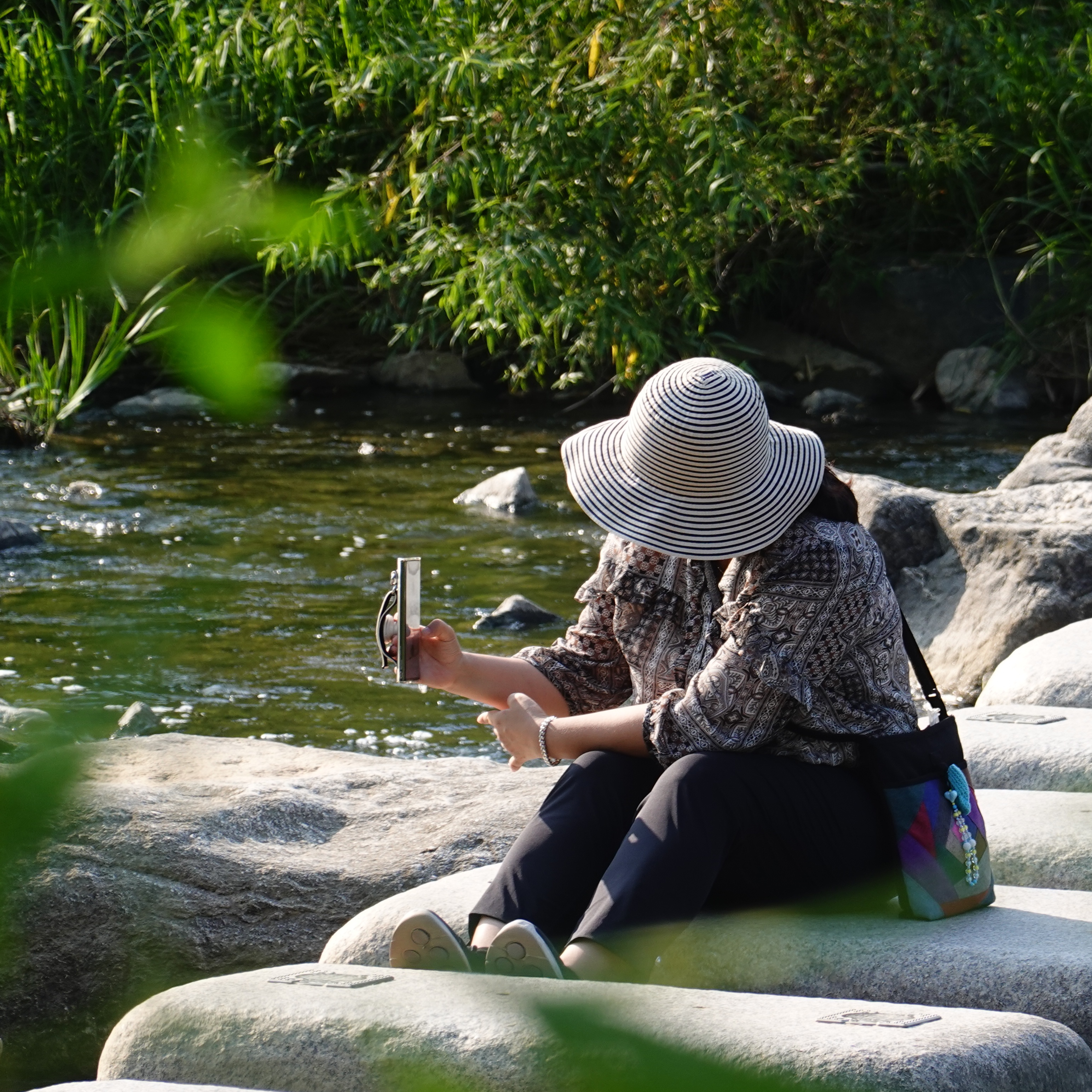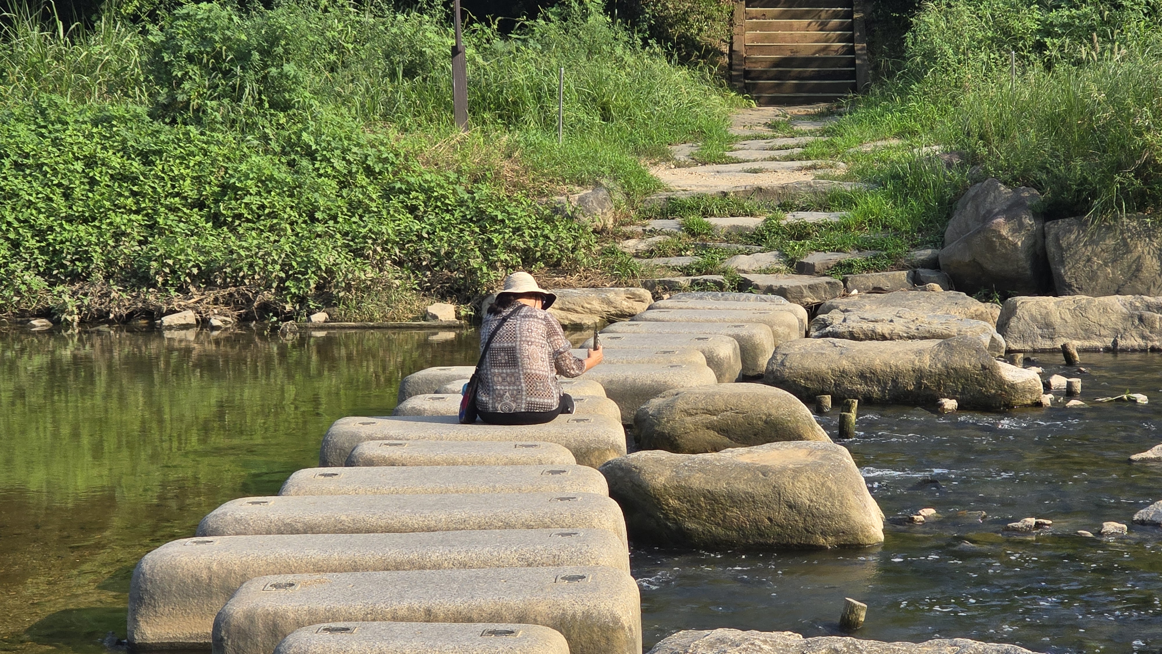 한증막 같이 뜨거운 햇살 아래 학의천에서 노니는 백로와 이를 기록하는 사람. 학운공원 A구역앞 돌다리에서