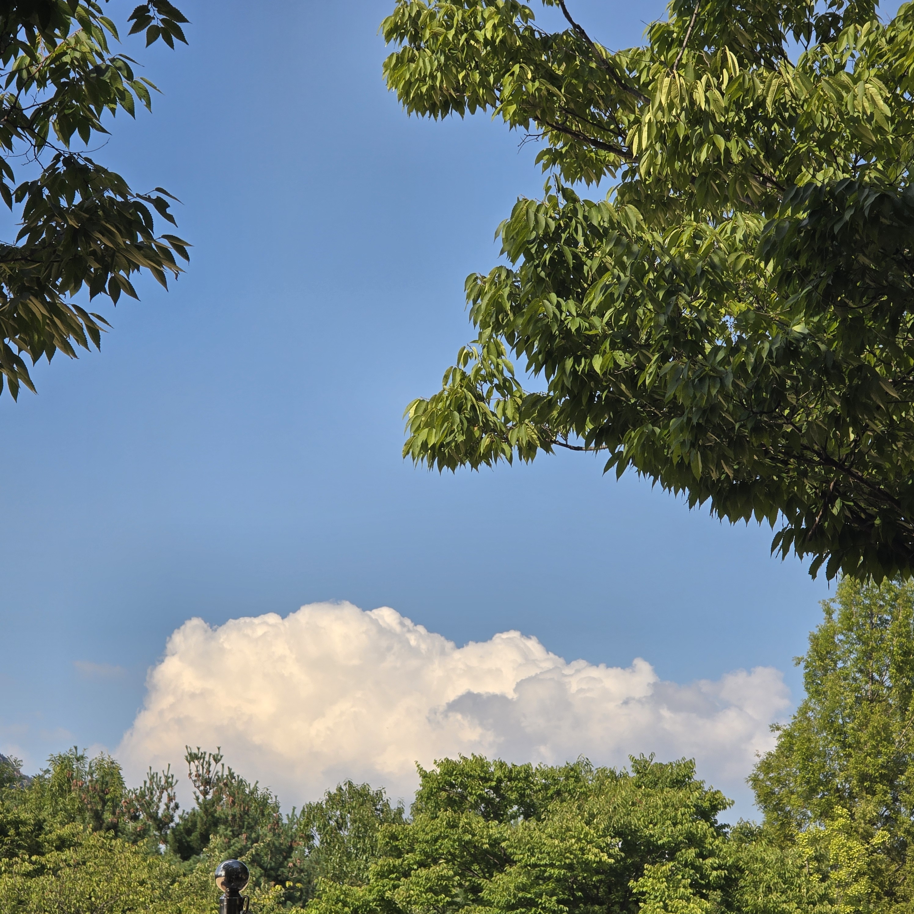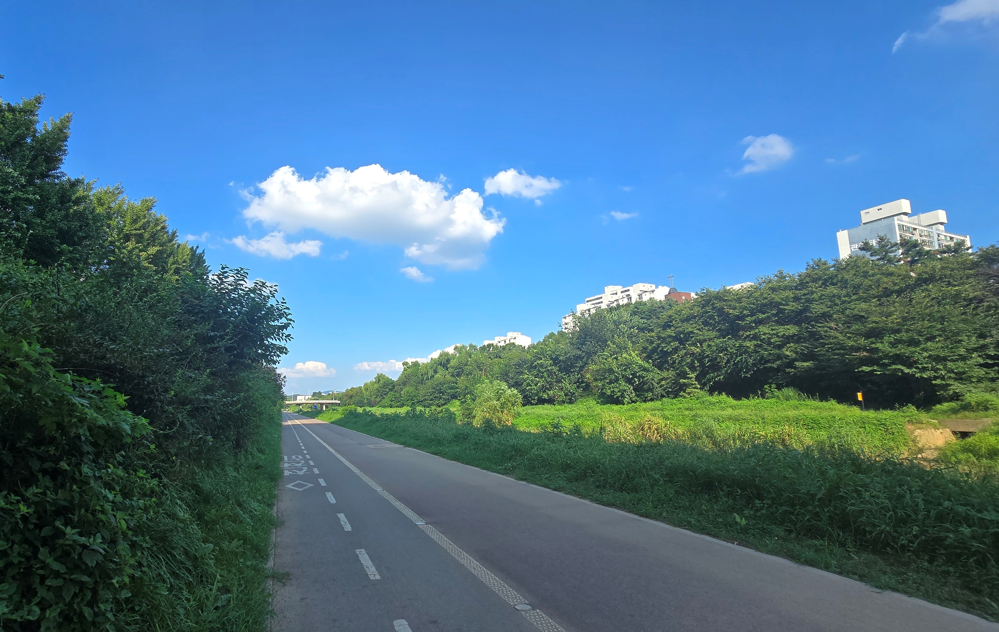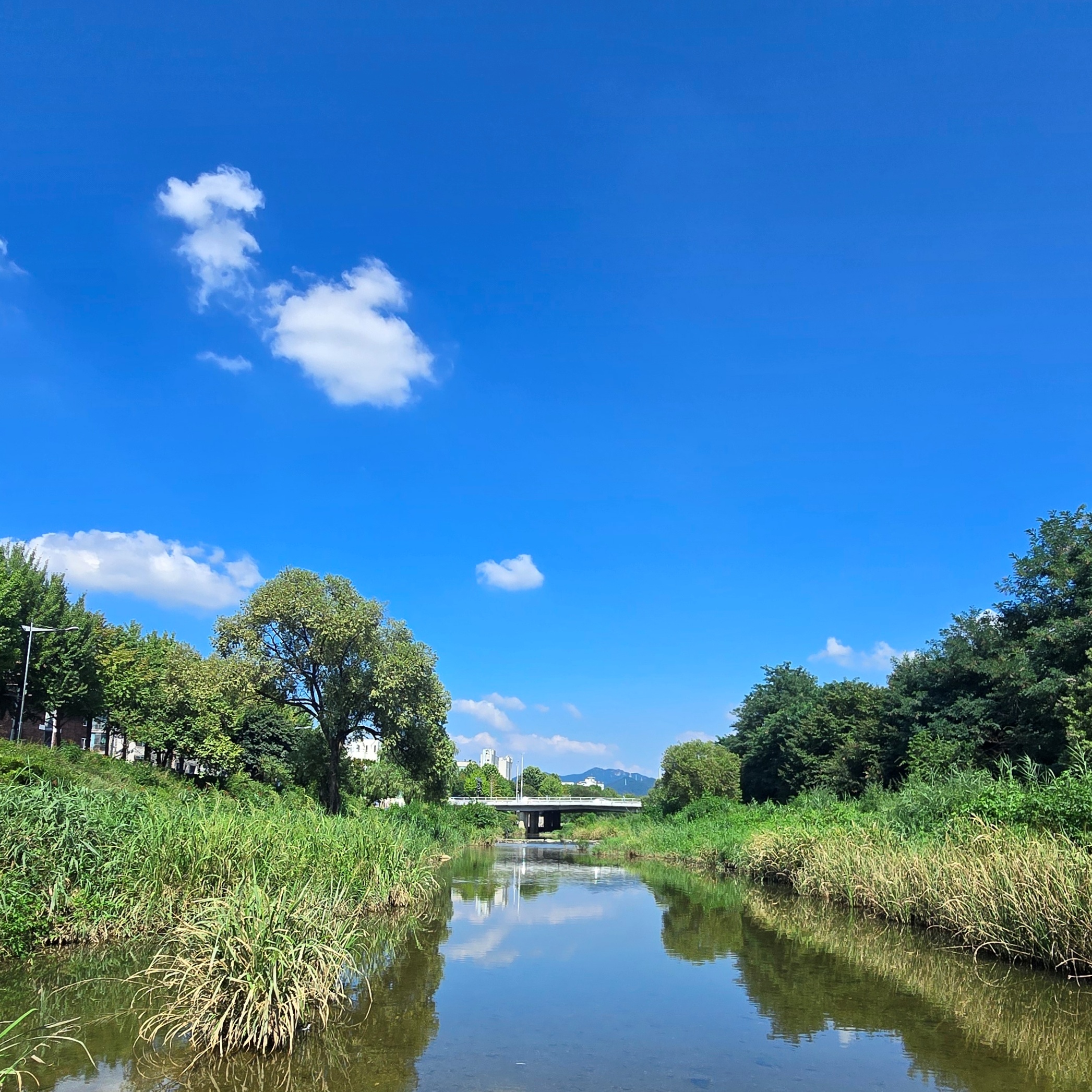 안양 학의천에서 하늘을 보다. 파란 하늘과 하얀 구름 두둥실