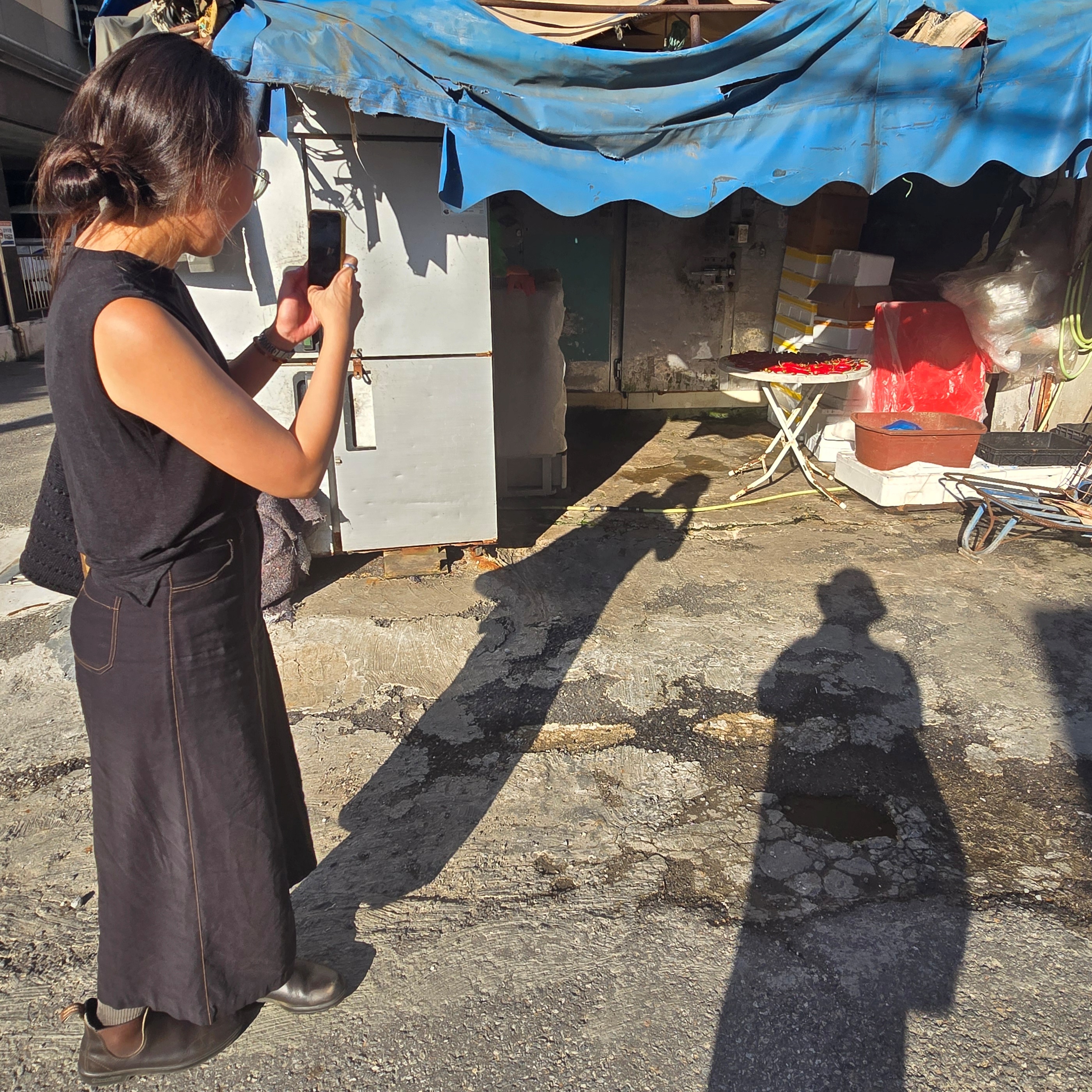 2025.08.26/ #도시기록 #탐방 #안양 #남부시장 #독일손님/ 독일에서 미술 연구 및 기획 활동을 하고 있는 작가의 안양의 옛 방직공장(금성방직, 테평방직)과 일했던 여성들에 대한 연구와 조사 및 기획전시에 도움을 주고자 공장이 있던 동네와 골목의 흔적을 찾아 안내하고 설명하다.