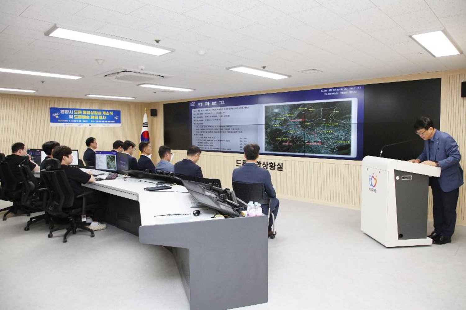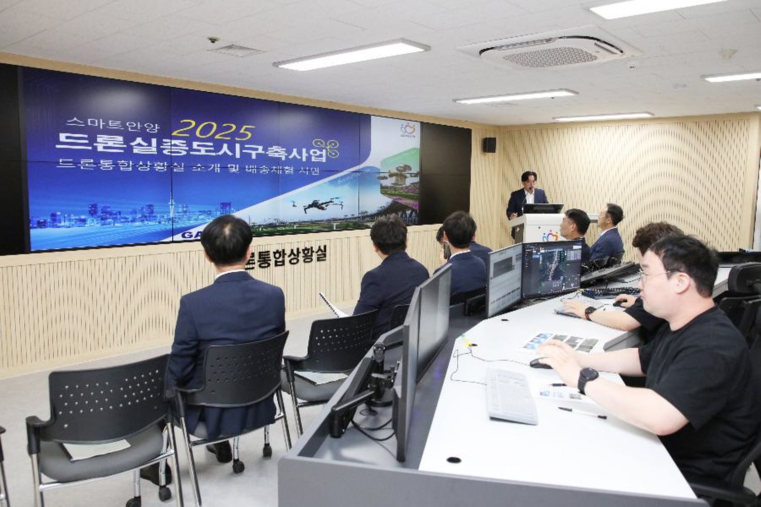 안양시가 국토교통부 공모로 추진 중인 ‘케이(K)-드론배송’ 서비스의 컨트롤타워 역할을 할 ‘안양시 드론 통합상황실’이 지난 16일 안양시청 본관 8층에 문을 열었다.